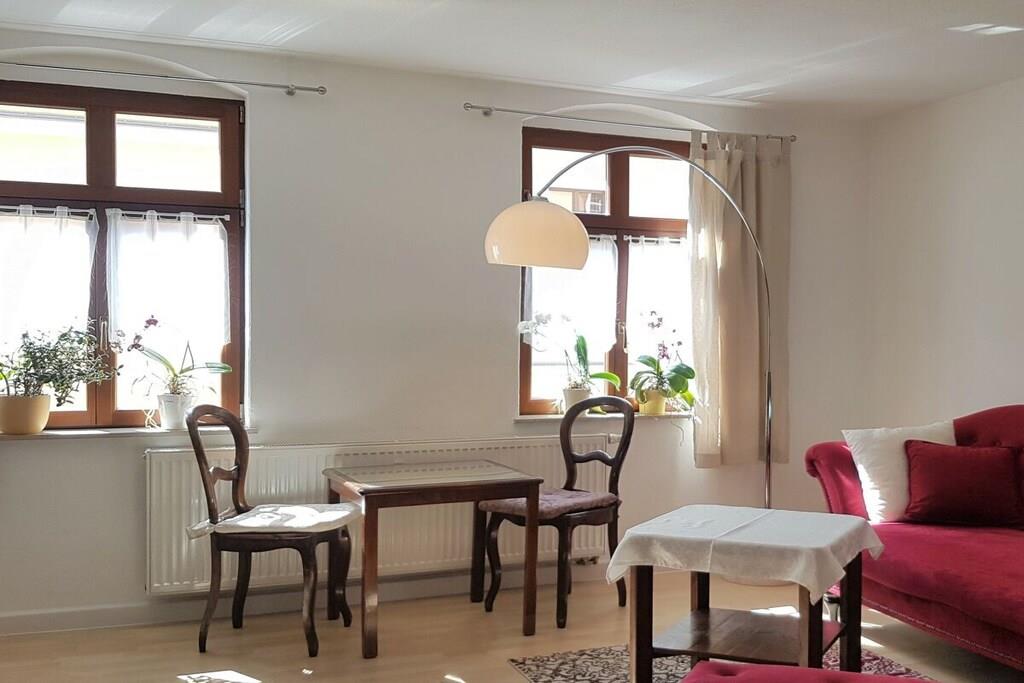 Sie bewohnen das zweite Obergeschoss eines historischen Hauses in Pirnas Altstadt. Die Ferienwohnung ist 74m² groß, vollständig ausgestattet mit zeitgemäßem Komfort für Ihre Ansprüche eines genussvollen Urlaubs in der Sächsischen Schweiz. Vom Wohn- und Schlafzimmerfenster aus sehen Sie das Schloss Sonnenstein. Vom Balkon haben Sie einen Blick auf die Elbe. In der voll ausgestatteten Einbauküche bereiten Sie Ihr Frühstück zu und nehmen zu viert am Küchentisch Platz. Entspannen Sie auf dem gemütlichen Sofa und Sessel, legen die Beine auf den Hocker, bei Entertainment via digitalem Sat-TV sowie Stereoanlage. Ein großzügiges Doppelbett und ein Einzelbett stehen im Schlafzimmer sowie ein zum Doppelbett ausziehbares Einzelbett im 2. Schlafzimmer, so dass 5 Personen bequem übernachten können.