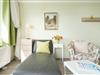 Wohnzimmer: 1 Doppelbett (2x 90x200 cm), Kleiderschrank, Verdunkelungsmöglichkeit: Plissees und Vorhang, TV, kein Platz für Babybett vorhanden