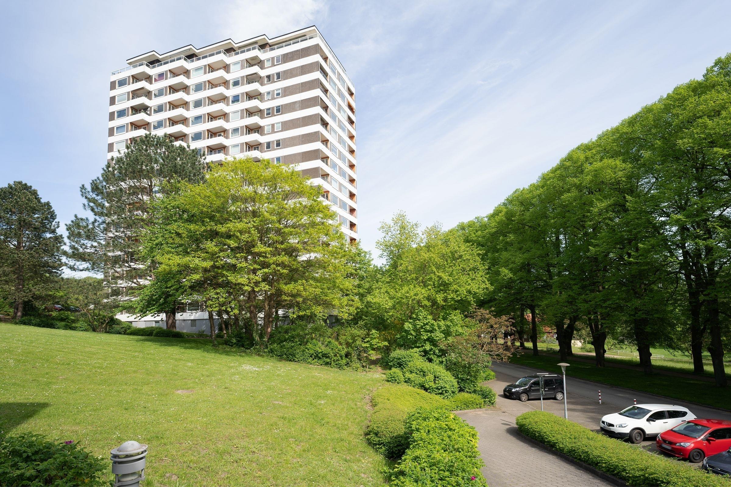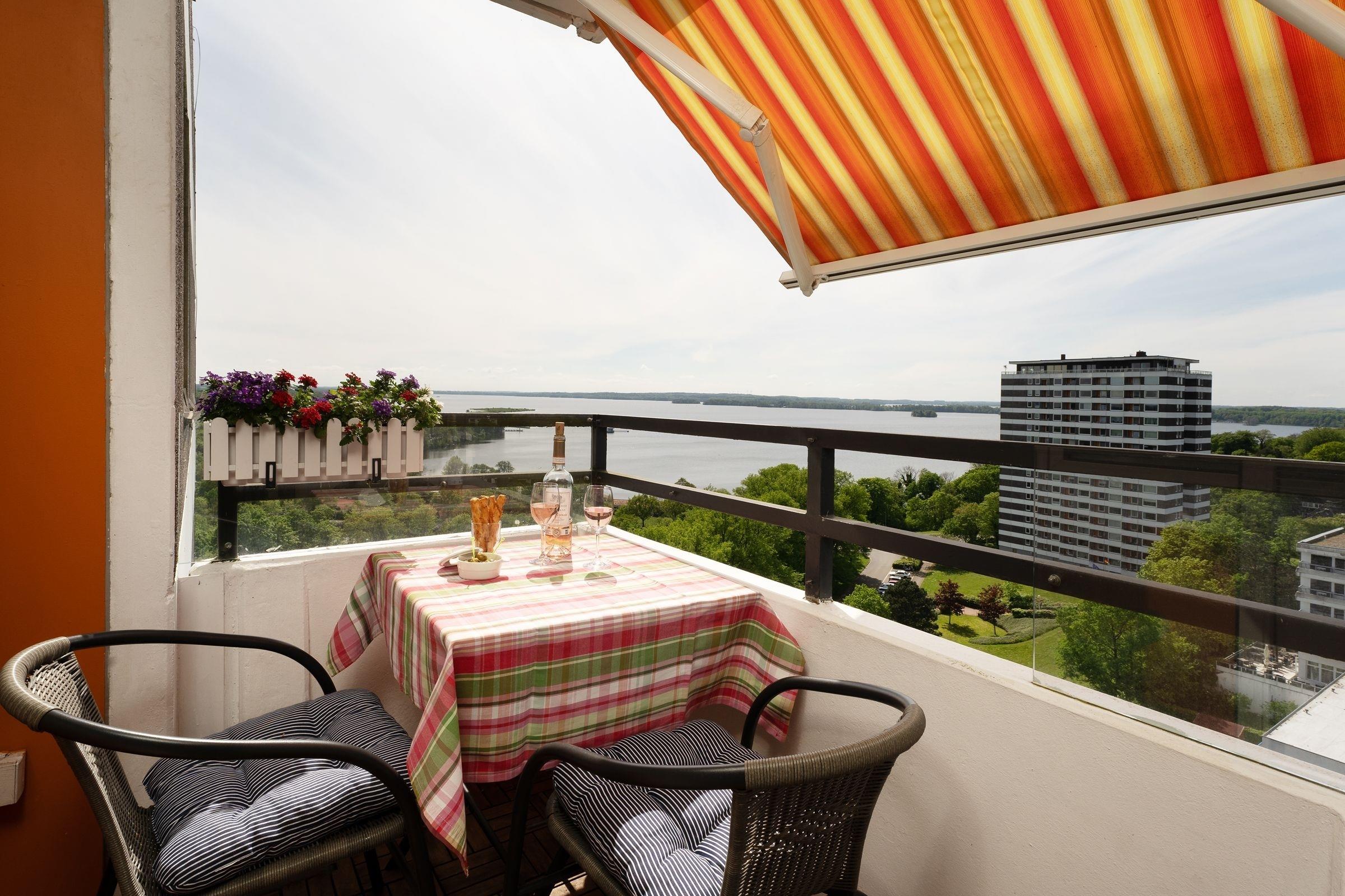 In der besten Lage von Plön: zauberhafte, ca. 34 m² große 1-Zimmer-Ferienwohnung im 13. Stock mit Balkon und Weitblick für bis zu 2 Personen.