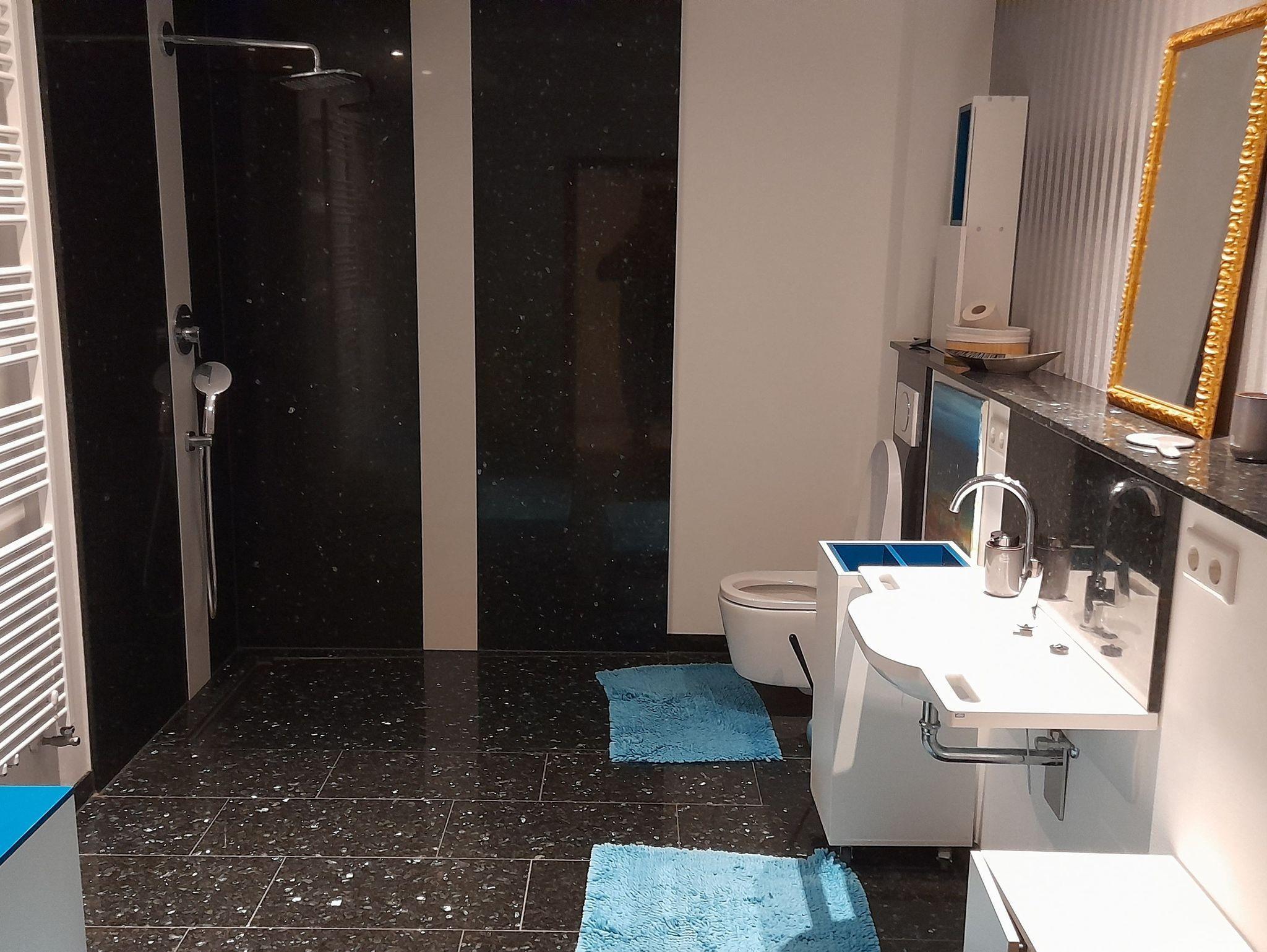 - 1 modernes Badezimmer mit ebenerdiger Dusche, 1 Gäste-WC