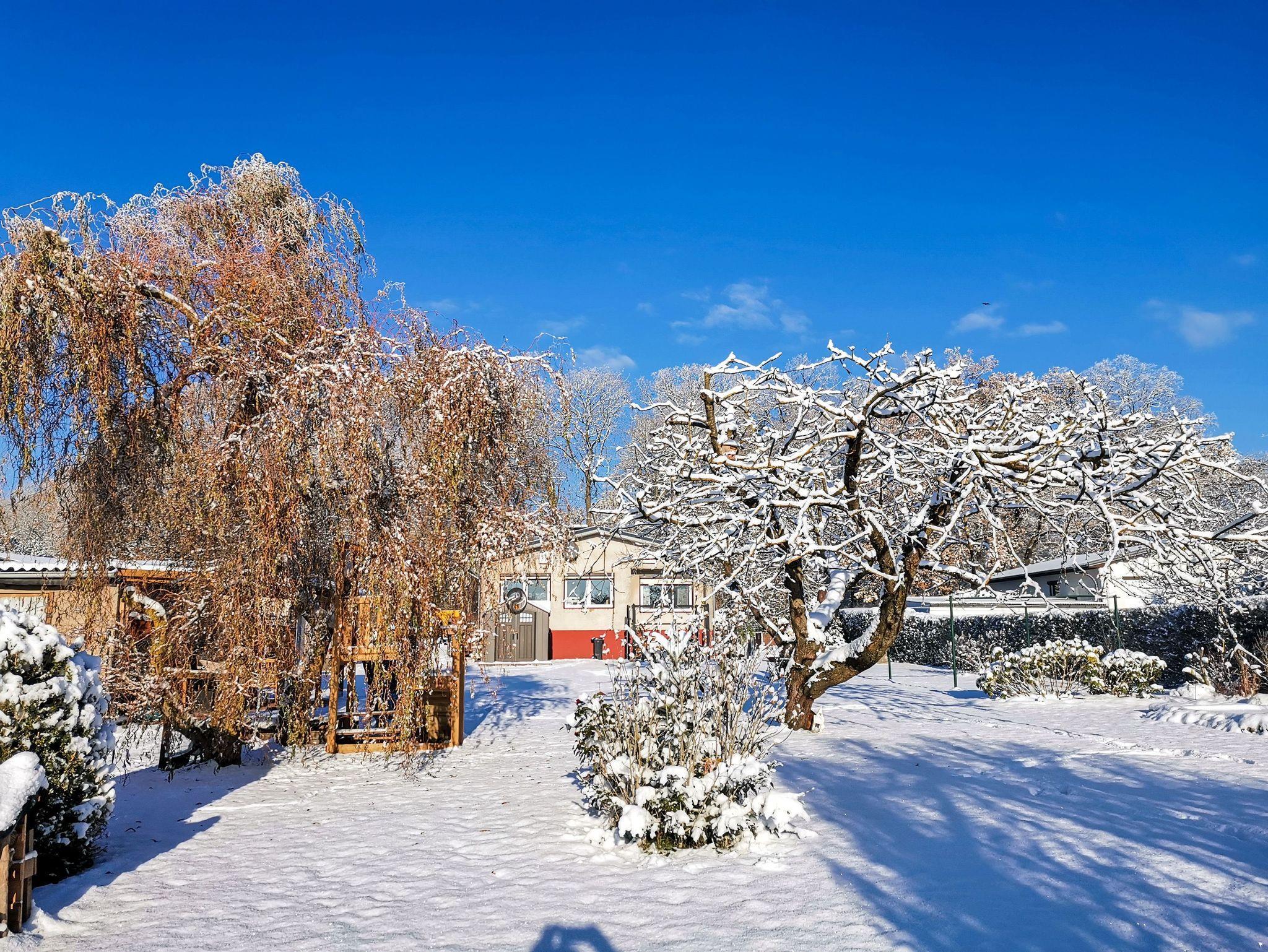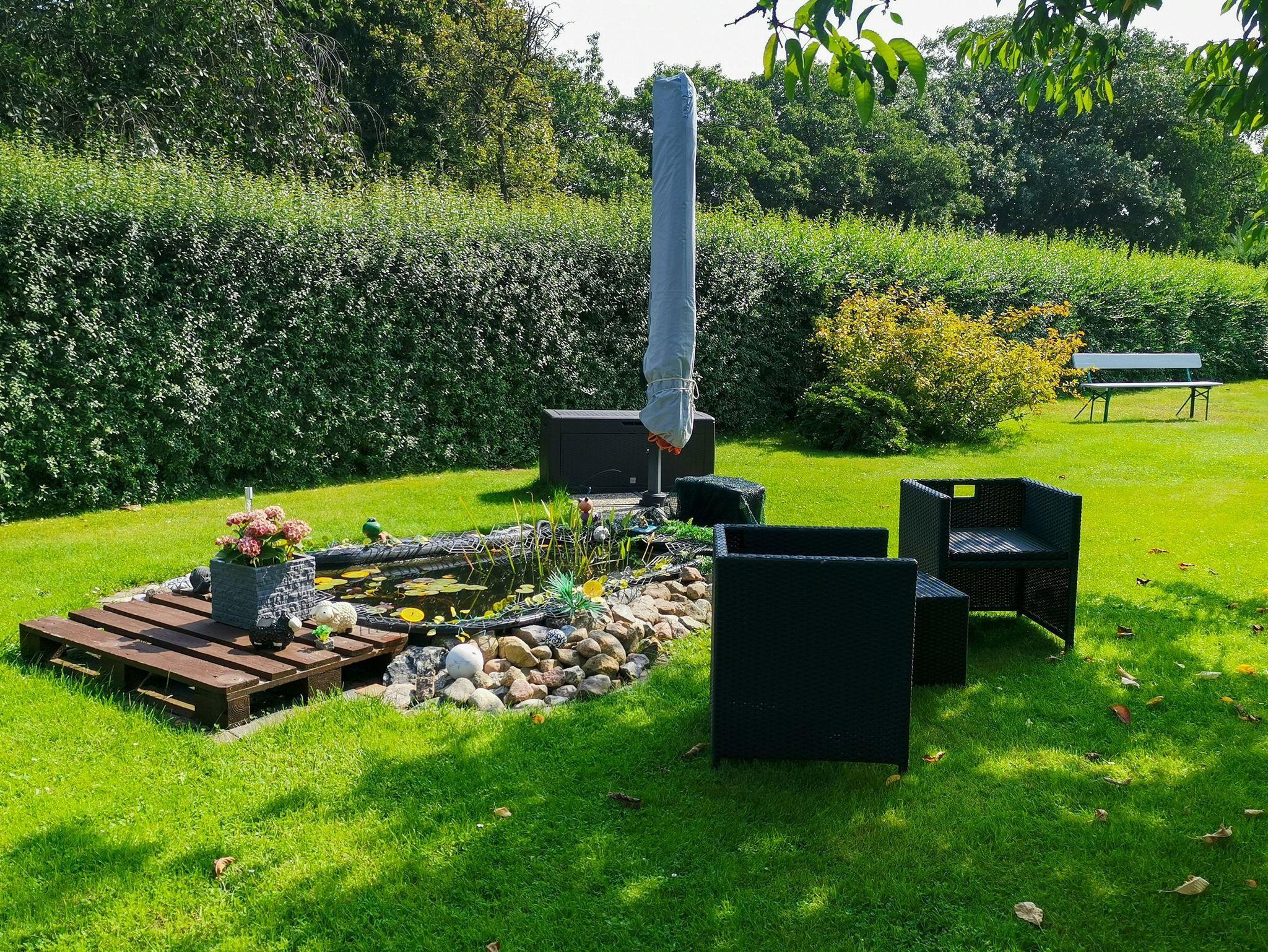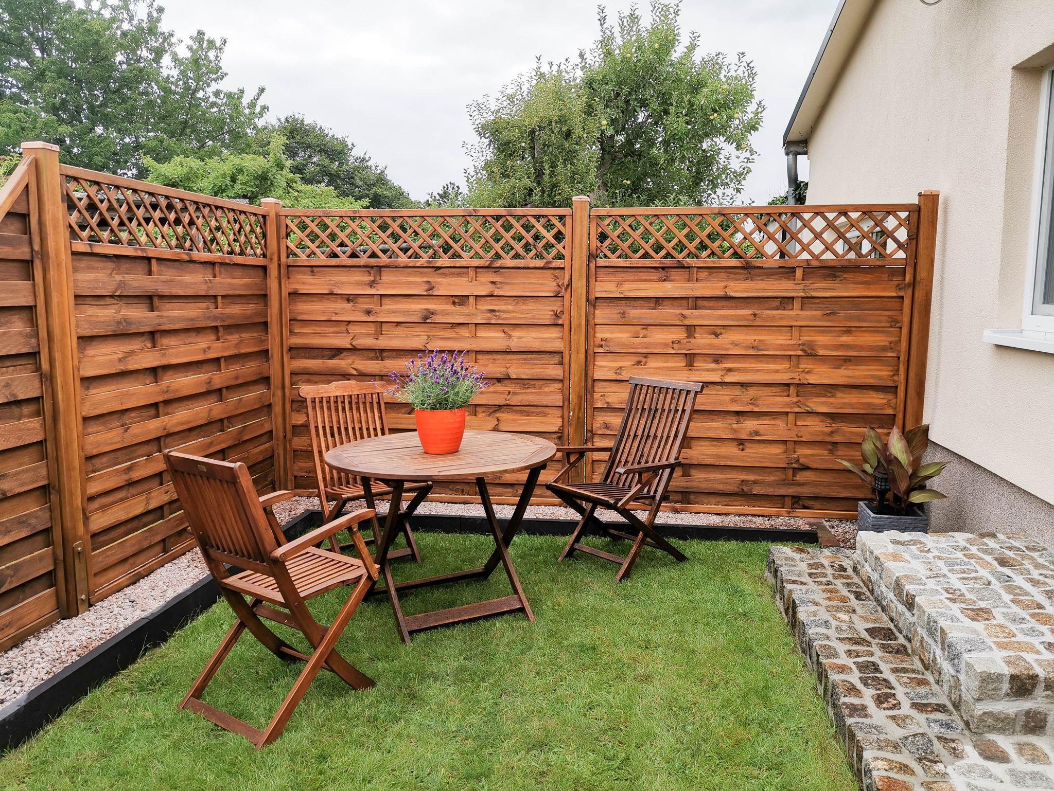 Die Ferienwohnung Blütenzauber in Plau am See ist auf 50 m² ein idealer Rückzugsort für 2 Personen, die eine entspannte Auszeit in der Natur suchen. Auf einem umzäunten Grundstück gelegen, empfängt dich diese ebenerdige Ferienwohnung im Bungalowstil mit einem liebevoll gestalteten Ambiente. Das gemütliche Schlafzimmer lädt mit einem Doppelbett (160x200), einer praktischen Garderobe und Rollos zum Abdunkeln für erholsame Nächte ein. Im Wohnzimmer kannst du es dir auf dem Sofa bequem machen und den Tag bei einem guten Film ausklingen lassen. In der separaten Küche findest du alles, was du zur Selbstverpflegung benötigst: Backofen, Herd, Kühlschrank mit kleinem Gefrierfach, Spülmaschine, Mikrowelle, Toaster, Kaffeemaschine und Wasserkocher. Hier kannst du nach Herzenslust kochen und es dir anschließend am Esstisch im Nebenraum schmecken lassen. Das Bad bietet dir eine erfrischende Dusche und ein WC. Der Außenbereich ist perfekt für entspannte Stunden im Freien. Die Terrasse mit Sichtschutz bietet dir einen gemütlichen Platz im Strandkorb und im Garten warten Liegestühle auf dich. Ein Grill lädt zu geselligen Abenden ein und für großen Spaß sorgt die Tischtennisplatte, die du nutzen kannst. Für dein Auto steht ein Parkplatz zur Verfügung und dein Fahrrad kannst du sicher im abschließbaren Schuppen unterstellen. Natürlich ist auch WLAN vorhanden, sodass du jederzeit verbunden bleibst.