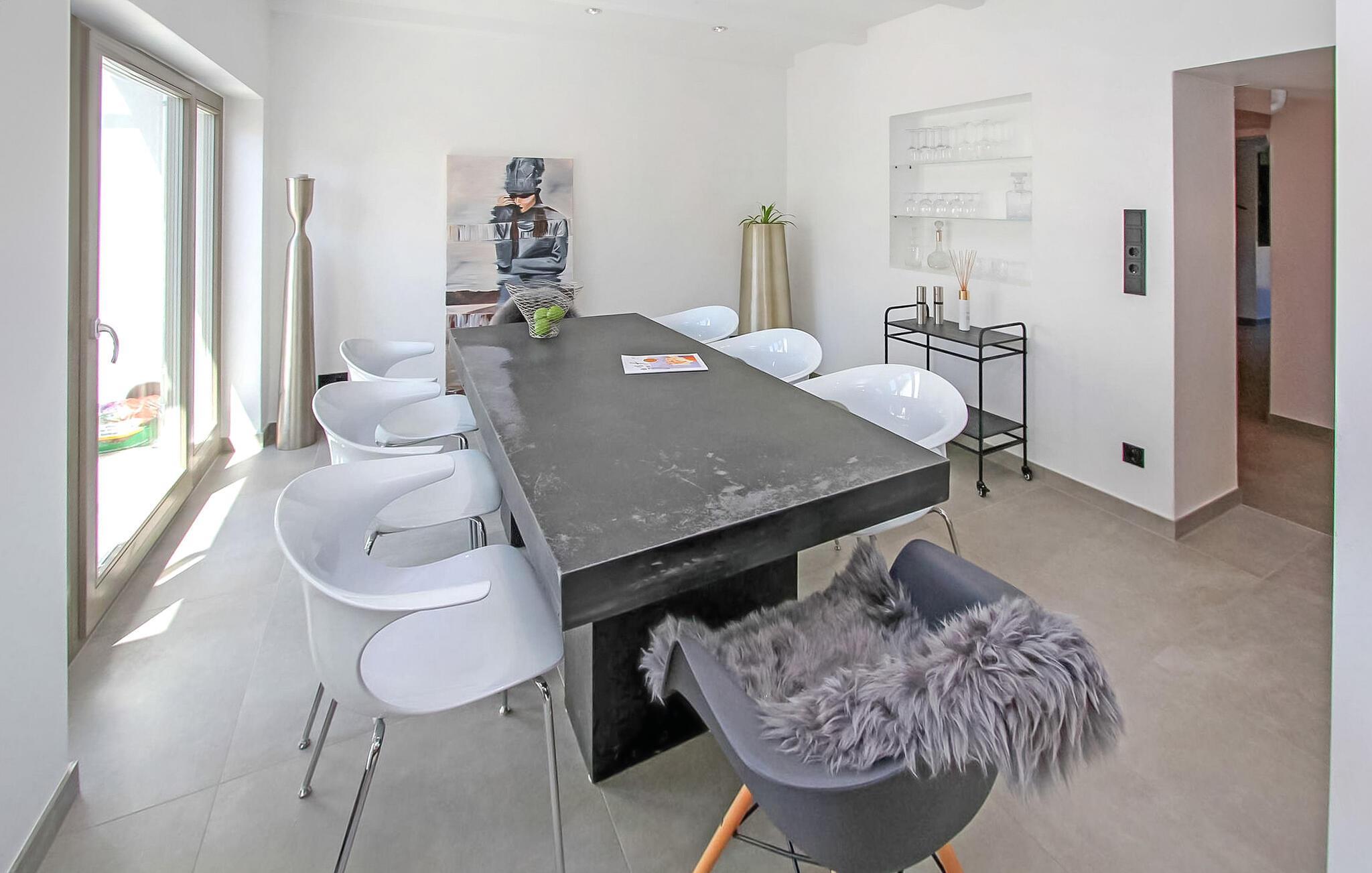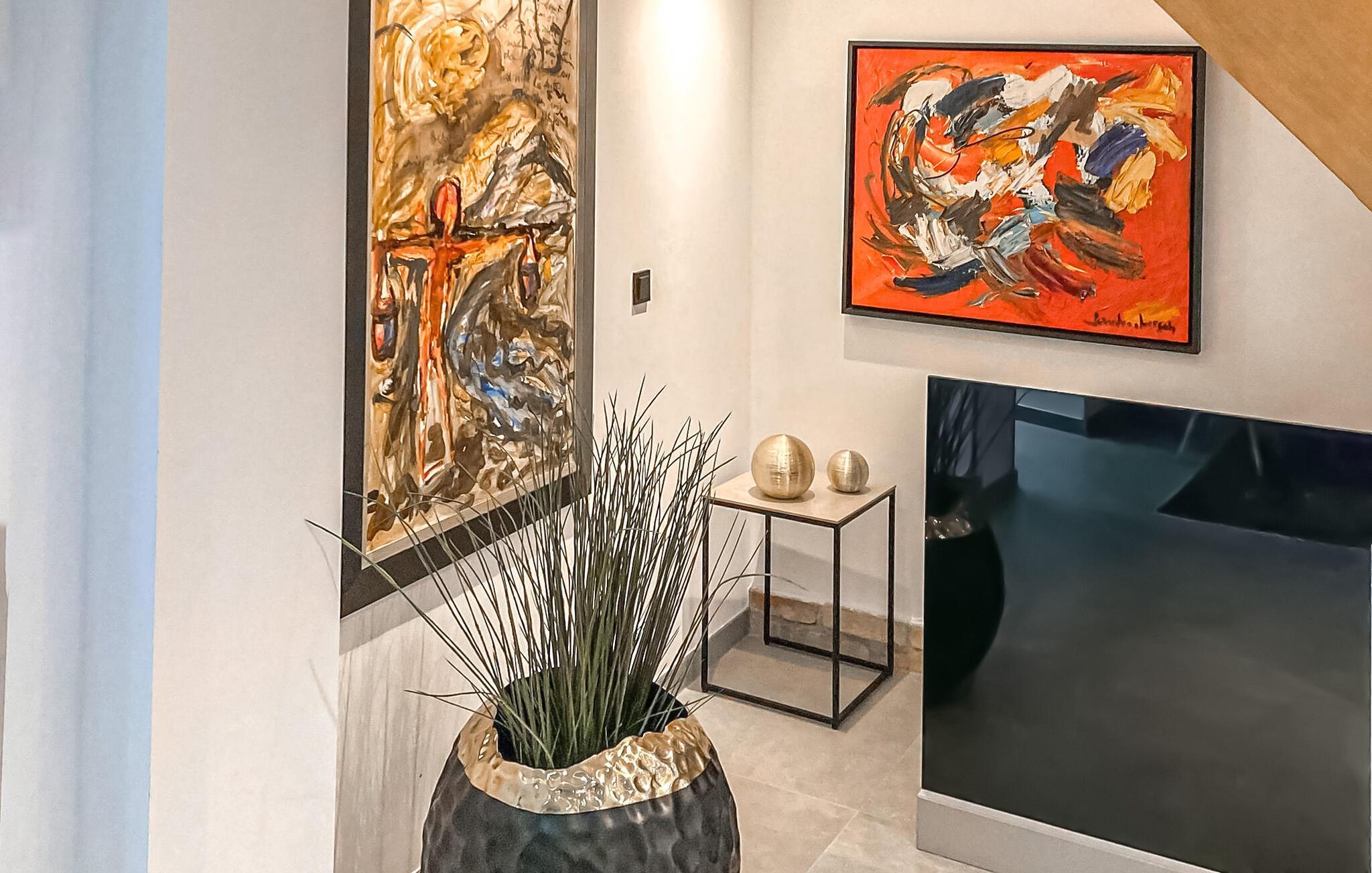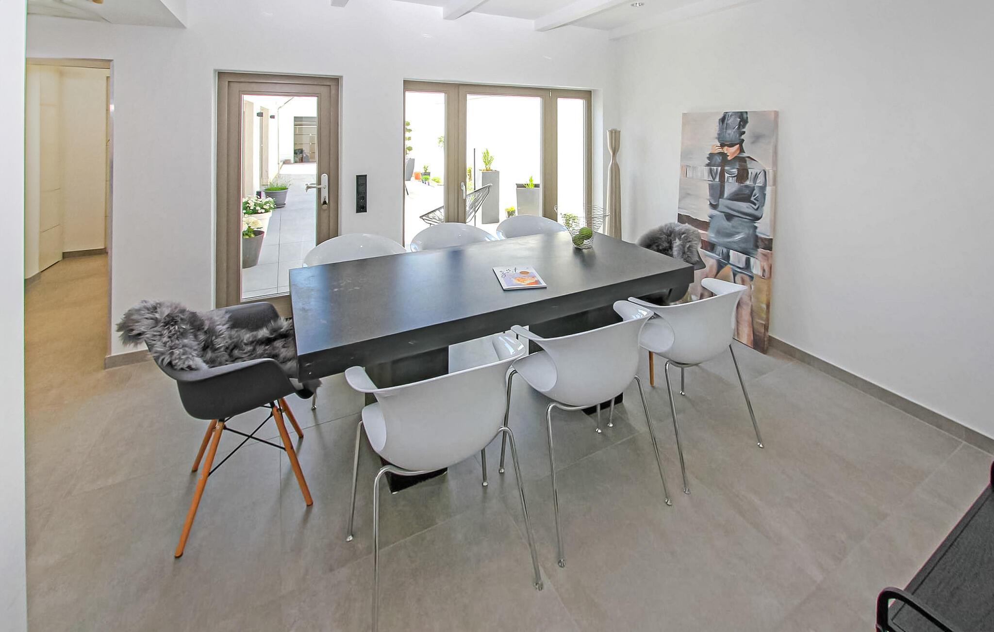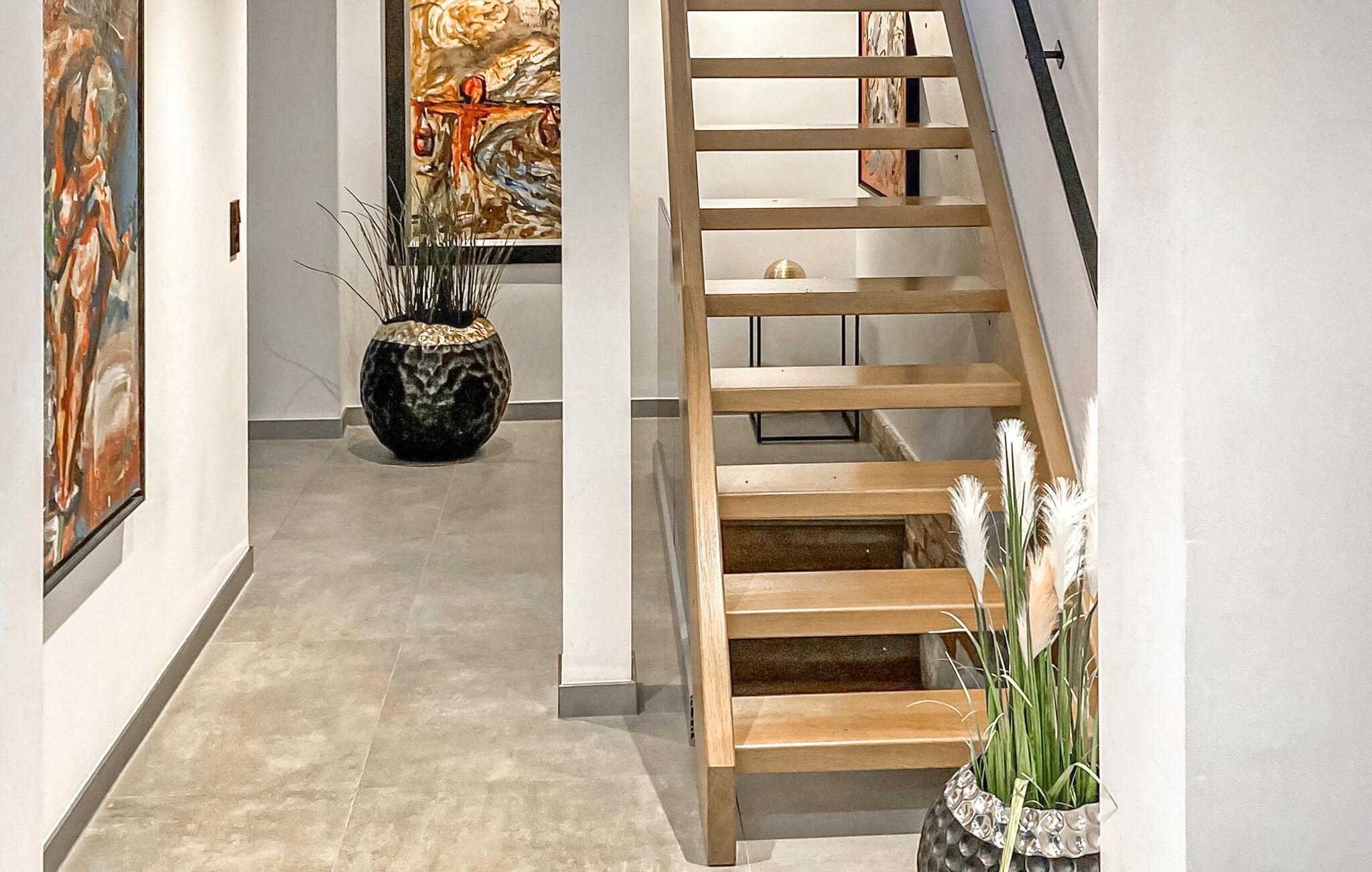 Das historische Gebäude wurde bis 2021 sehr aufwändig saniert und im modern-minimalistischen Stil eingerichtet. Die hochwertige Ausstattung genügt gehobenen Ansprüchen. Erstbezug Juli 2021. Das Erdgeschoss verfügt über einen offenen Zuschnitt. Hier befinden sich zwei Wohnbereiche (Polstermöbel, Sitzecken, Smart-TV), eine hochmoderne Küche (u.a. E-Kochfeld mit integriertem Bora Dunstabzug, Backofen, internetfähiger Kühlschrank mit Eiswürfelspender, großer Esstisch, div. Küchengeräte), ein kleines Gäste-WC, 1 Schlafraum mit Doppelbett (Durchgangszimmer zum Bad) und ein Bad mit offener Dusche und Waschmaschine. Im Obergeschoss gibt es zwei weitere Schlafräume (je Doppelbett, Flachbild-TV) und ein Bad mit freistehender Badewanne, offener Dusche und LED-Spiegel mit integriertem Kosmetikspiegel. Für Kleinkinder stehen ein Kinderbett und ein Kinderhochstuhl bereit. Für größere Kinder bis 10 Jahre können zusätzlich Gästebetten zugestellt werden.