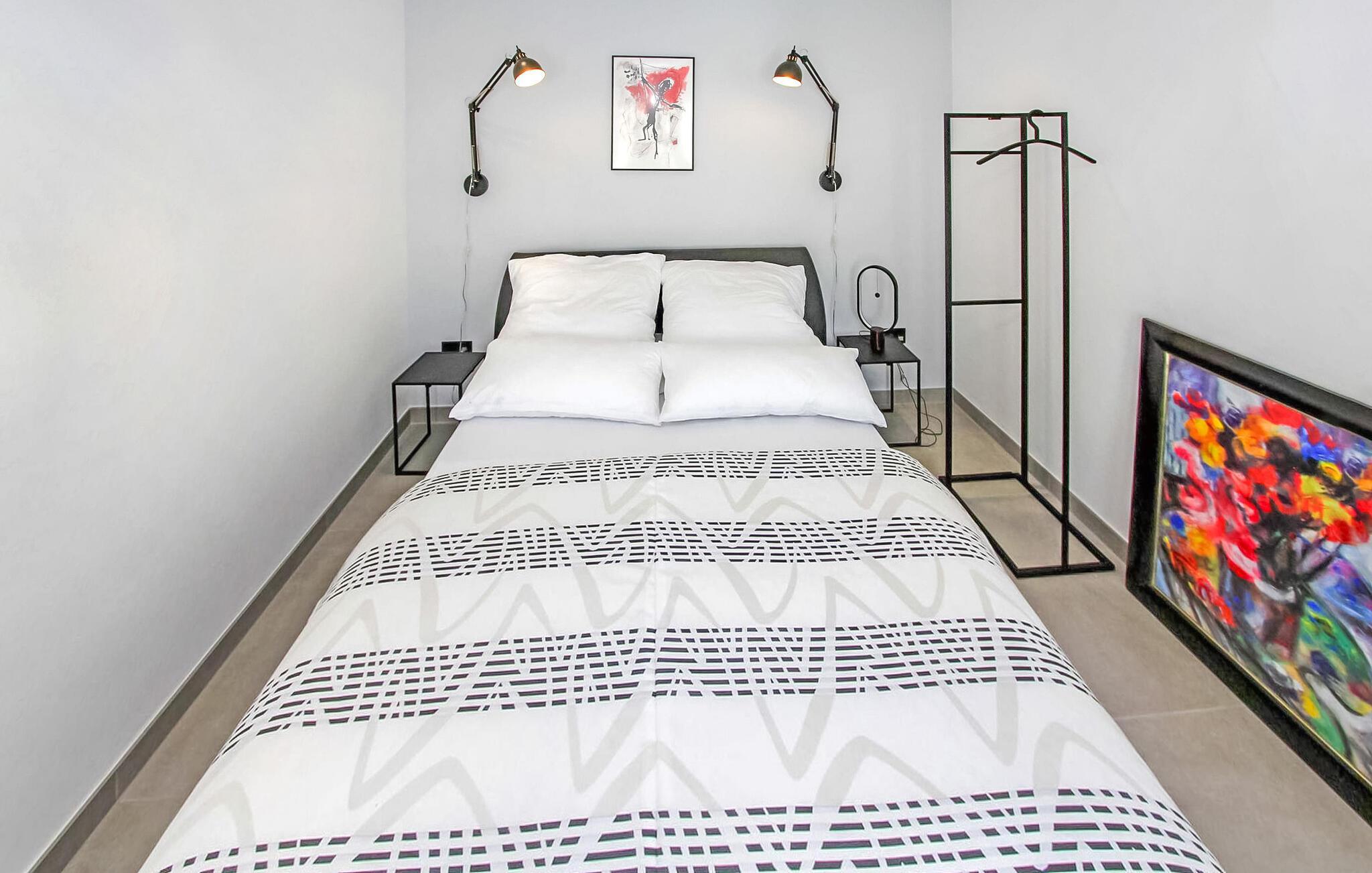 Schlafzimmer (nr. 1) - 2 Schlafmöglichkeiten. (Doppelbett(en)). 1 Schlafmöglichkeit. (Matratze).
