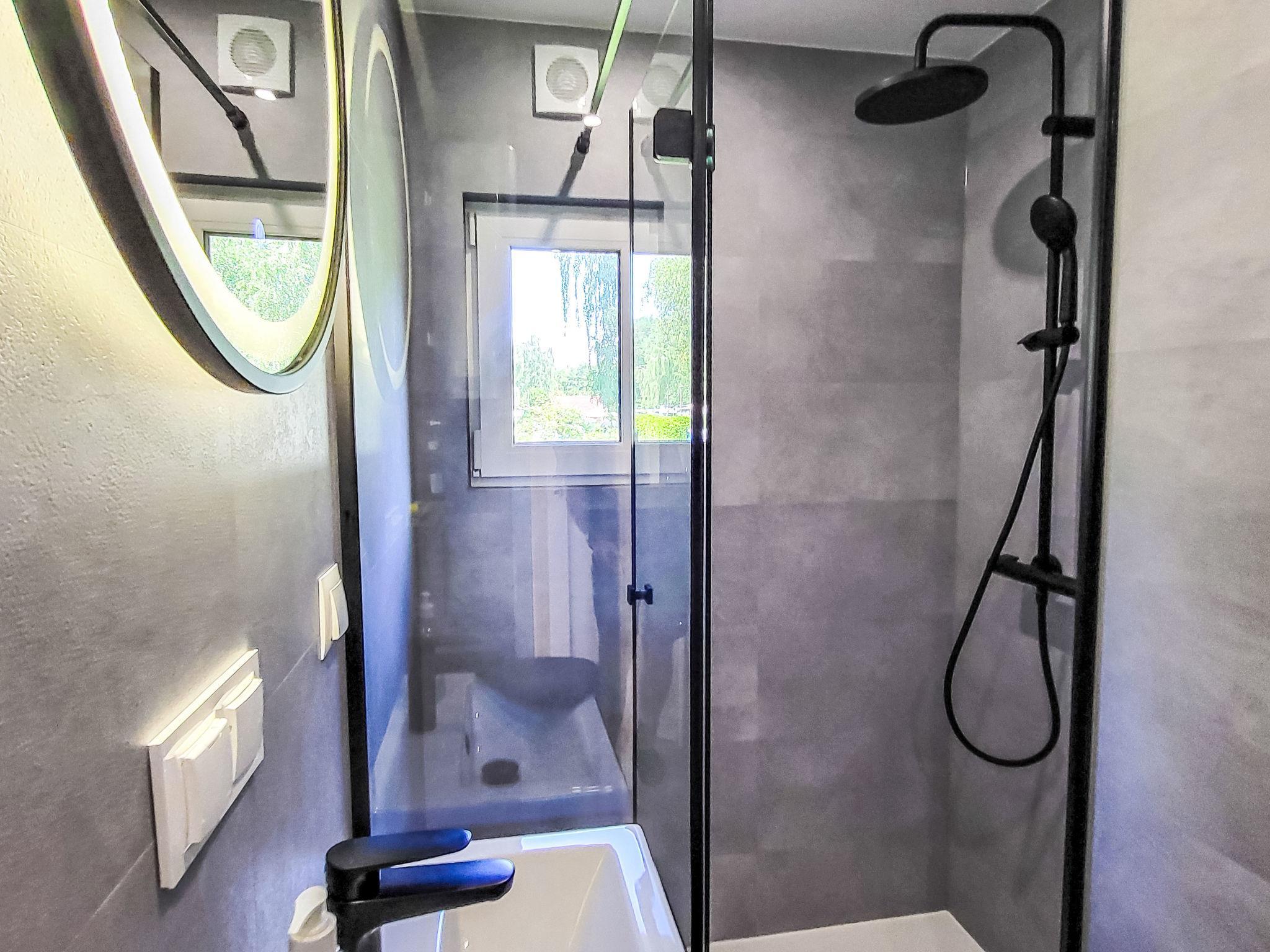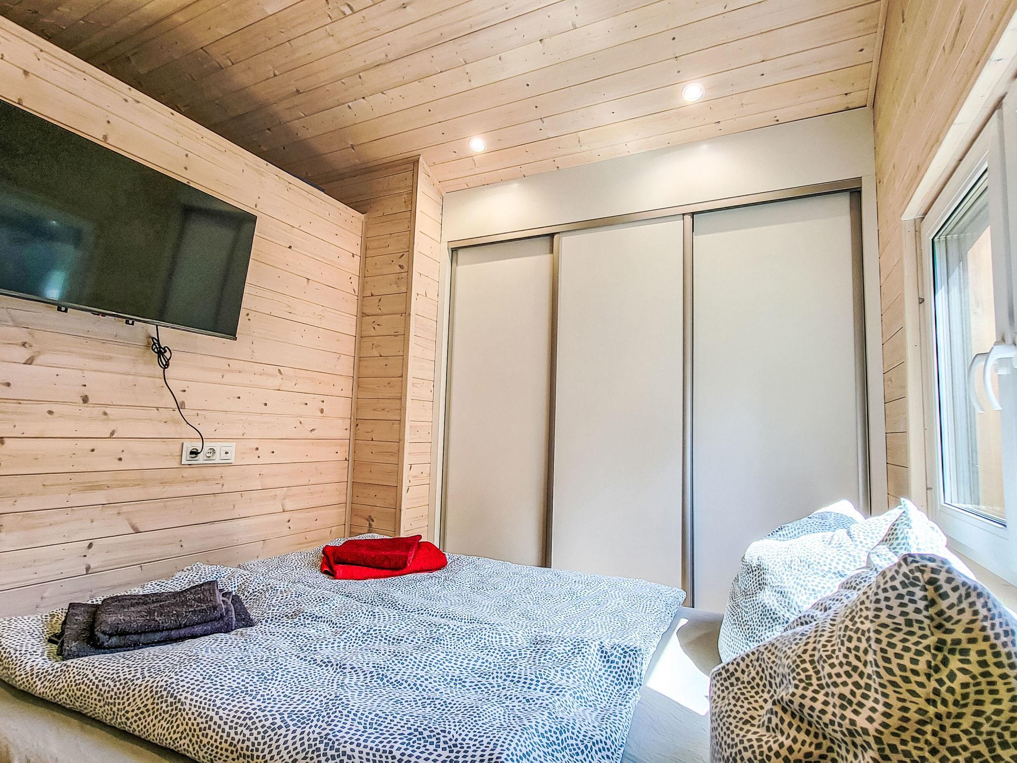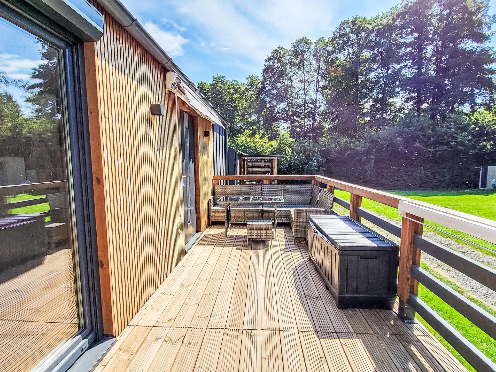 "Haus 41 Fiete", 3-Zimmer-Mobilheim. Modern und geschmackvoll eingerichtet: Wohn-/Schlafzimmer mit 1 Doppeldiwanbett (180 cm, Länge 200 cm), Sat-TV. Ausgang zur Terrasse. 1 Zimmer mit 1 Bett (90 cm, Länge 200 cm). 1 Zimmer mit 1 Doppelbett (160 cm, Länge 200 cm), Sat-TV. Offene Küche (Backofen, Geschirrspüler, 4 Induktionskochplatten, Toaster, Wasserkocher). Dusche/WC. Heizung. Terrasse 12 m2. Sehr schöne Sicht auf den Wald. Zur Verfügung: Internet (WLAN). Parkplatz beim Haus. Maximal 1 Haustier/Hund erlaubt.