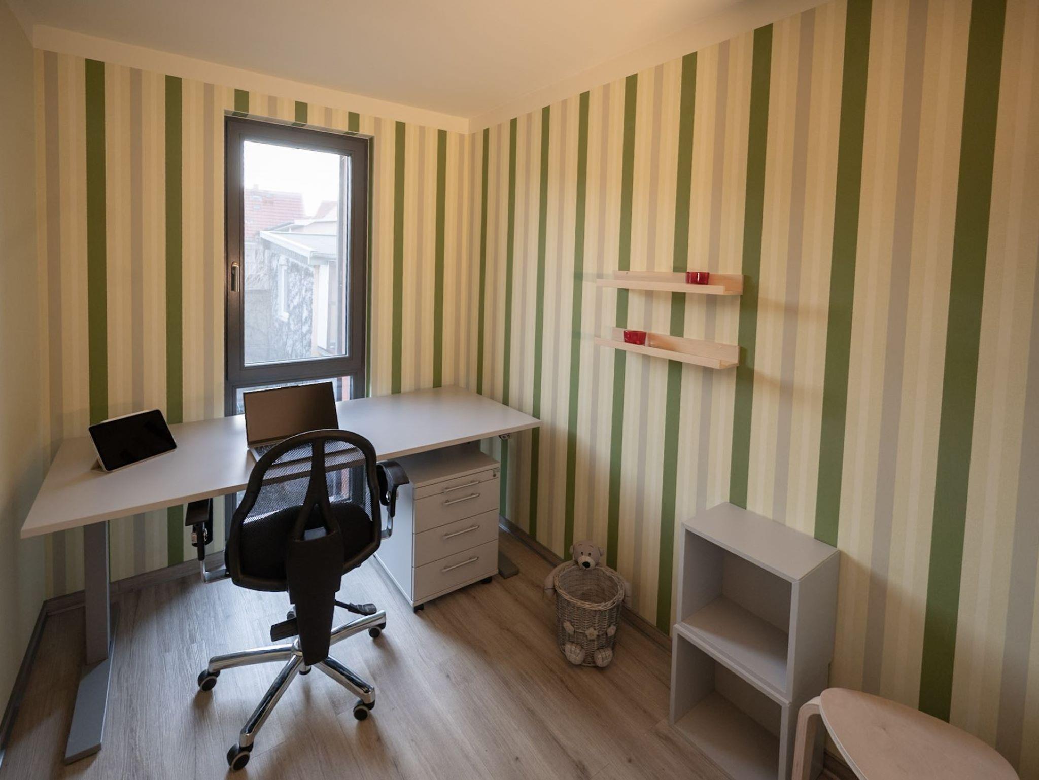 Für Gäste, die auch während ihres Urlaubs arbeiten möchten, steht ein separates Büro zur Verfügung. Ausgestattet mit einem Schreibtisch und einem Aktenschrank, bietet dieser Raum eine ruhige Atmosphäre, um konzentriert zu arbeiten oder wichtige Unterlagen zu organisieren.