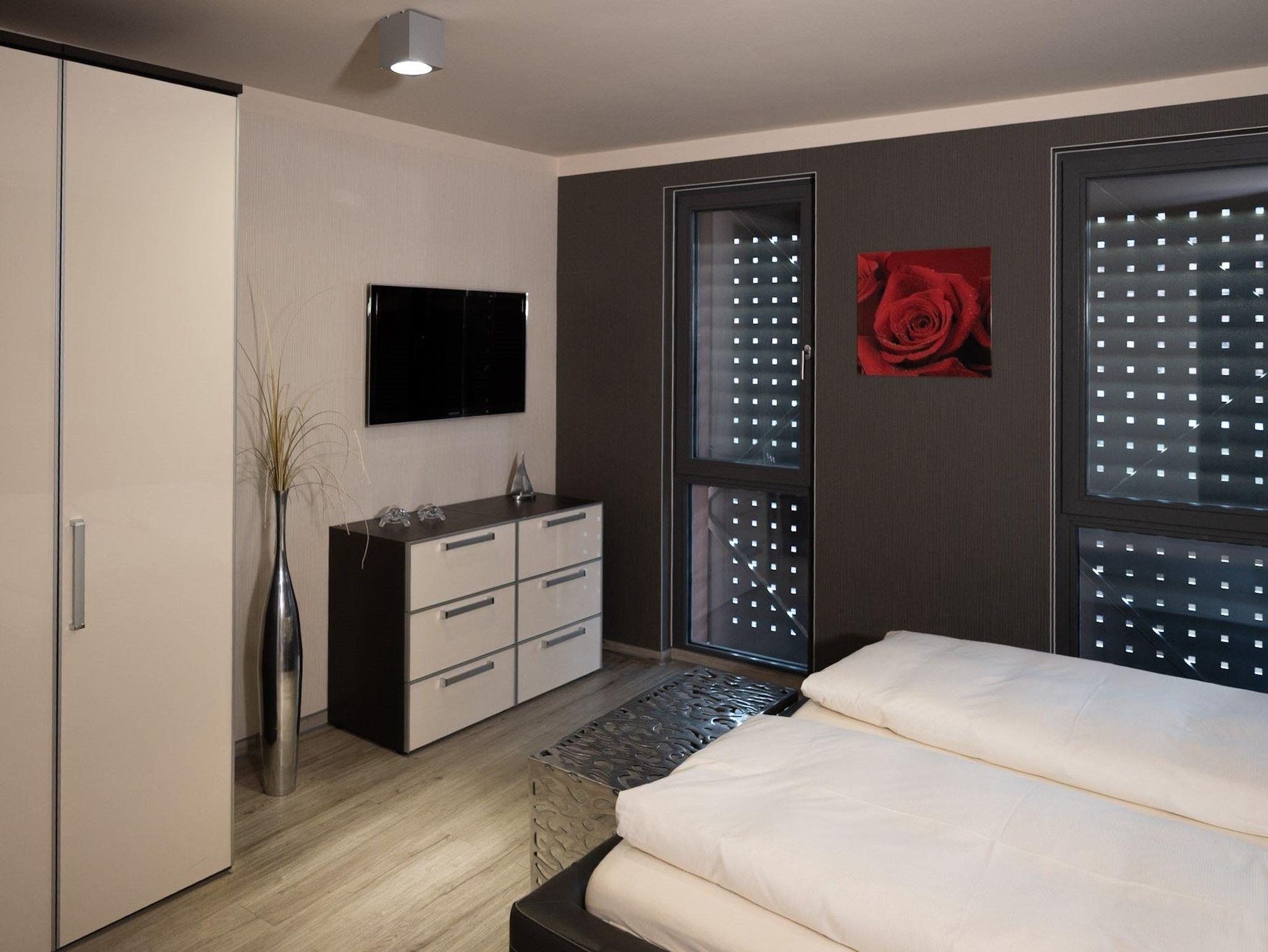 Das gemütliche Schlafzimmer ist Ihr persönlicher Rückzugsort. Es verfügt über ein komfortables Doppelbett und ein separates, modernes Bad, das mit hochwertigen Armaturen und einer entspannenden Dusche ausgestattet ist. Hier können Sie nach einem erlebnisreichen Tag am See wunderbar zur Ruhe kommen.