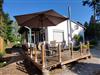 Ferienhaus mit Wohnzimmer, Kamin und offener Küche, 2 Schlafzimmer (1 Durchgangsschlafzimmer), Duschbad, Wintergarten, Terrasse und großer eingezäunter Garten