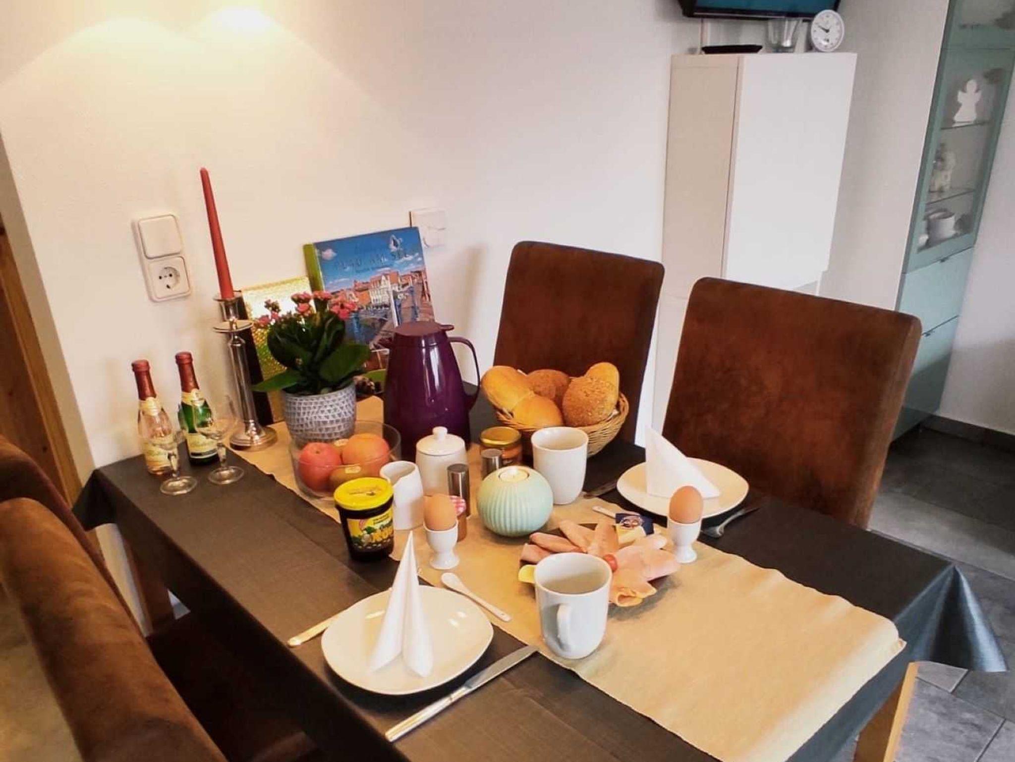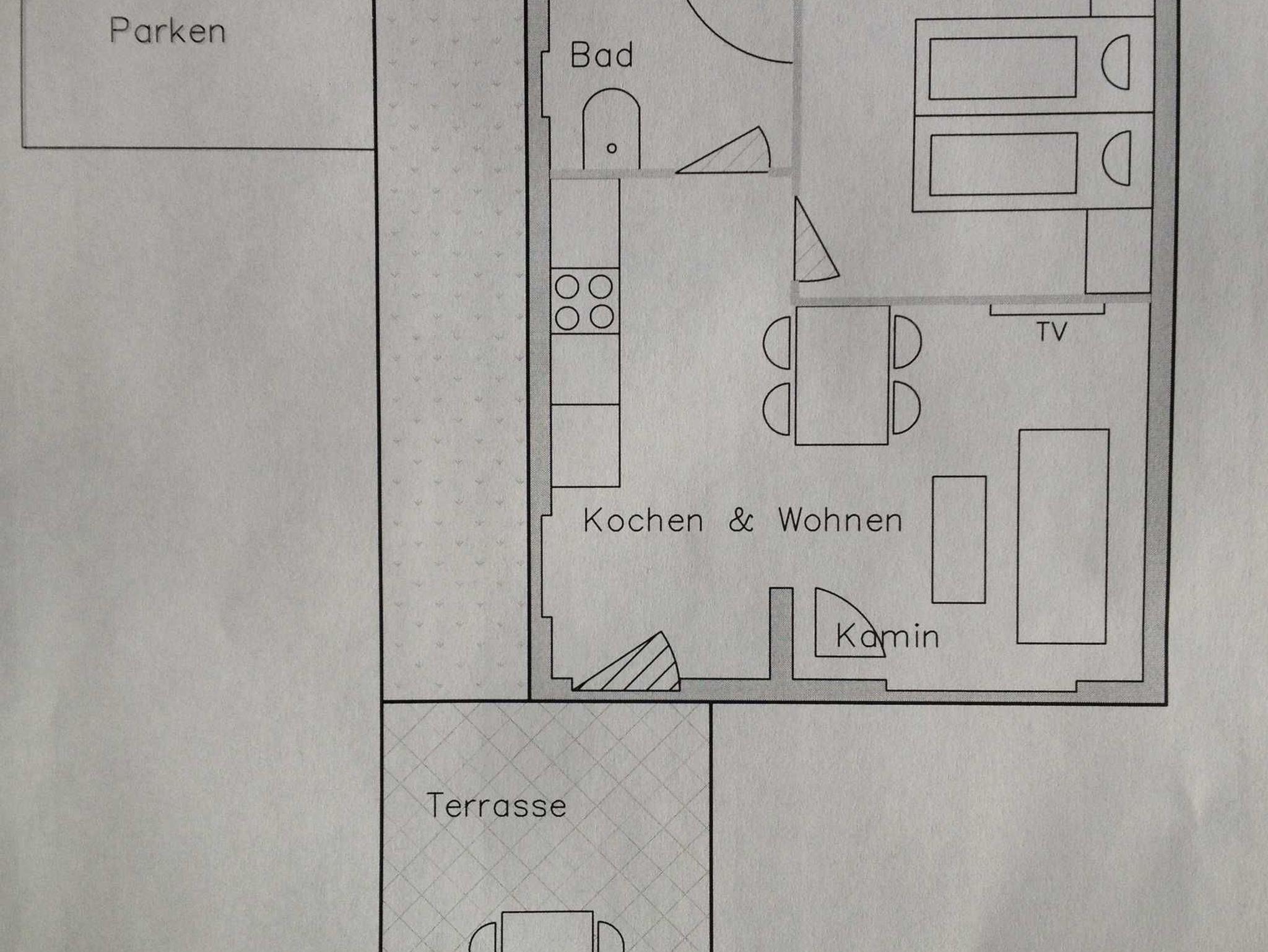 Für einen gelungenen, erholsamen Urlaub stehen Ihnen ein Wohnzimmer mit Kamin und einer großen Küchenzeile inklusive Kühlschrank, Cerankochfeld mit Backofen, Mikrowelle, Geschirrspülmaschine, ein Schlafzimmer mit einem Doppelbett und genügend Stauraum für Ihre Sachen, ein kleines, feines Badezimmer mit Dusche, ein Nebenraum mit Waschmaschine, ein abschließbares Gartenhaus für Ihre Fahrräder, eine große Sonnenterrasse und ein schattiges Plätzchen unter unserem Walnussbaum im Garten zur Verfügung. Ihren PKW können Sie bequem vor dem Haus auf dem Grundstück parken. Im gesamten Ferienhaus befindet sich eine Fußbodenheizung. Sie erhalten freies schnelles W-LAN, eine Bluetooth-Box steht zur Verfügung. Das Ferienhaus ist mit Rauchmeldern und Insektenschutzgitter ausgestattet.
