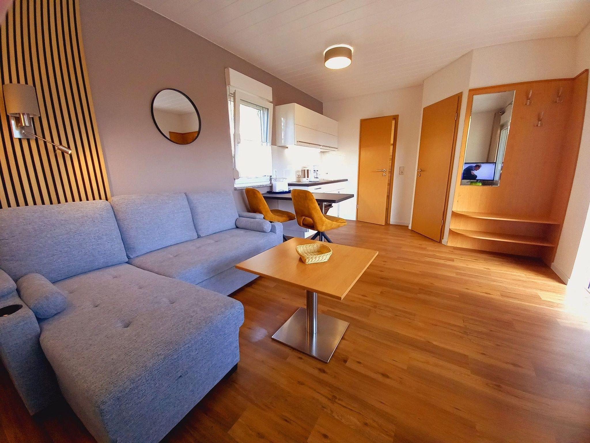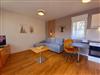 Ferienhaus für 2 Personen, 1 Schlafzimmer - 1 Aufbettung im Wohnzimmer auf der Eckcouch möglich, 1 Wohnzimmer mit Einbauküche mit Induktionskochfeld, Kaffeemaschine, Backofen mit integrierter Mikrowelle, TV, DU / WC, möblierte Terrasse.