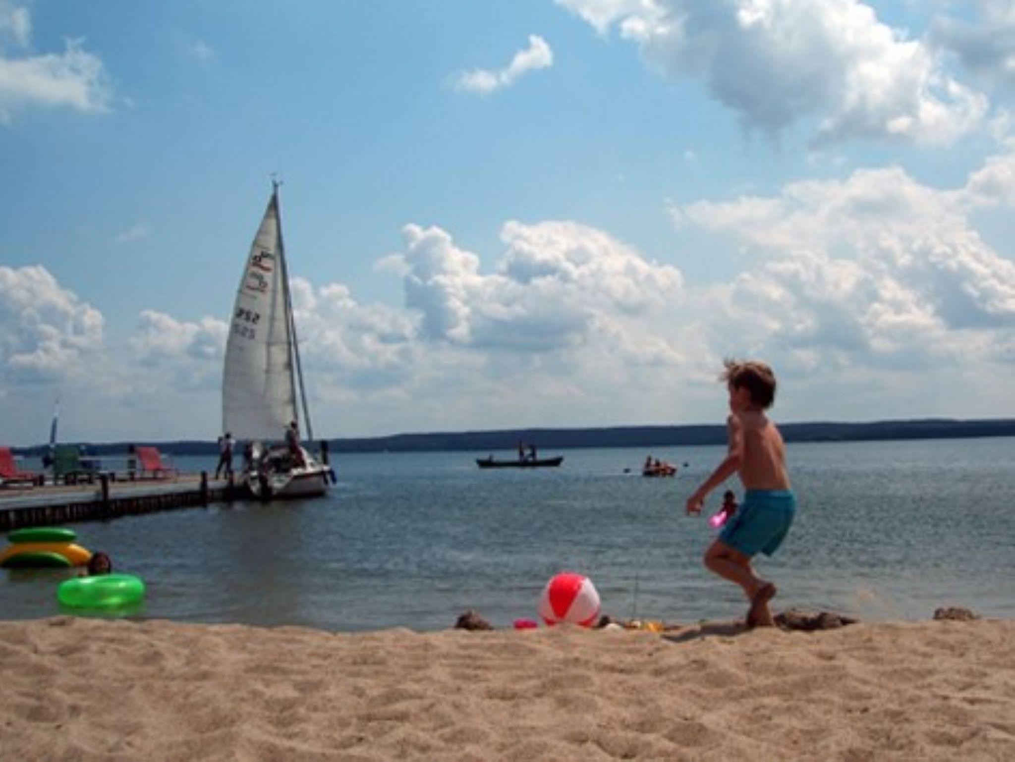 Fernab jeder Alltagshektik finden Sie hier im familienfreundlichen Ferienpark ganzjährig in 1. Seelage Entspannung und Abwechslung bei Wassersport, Angeln, Wandern, Radeln u.v.m. Sommerliche Badefreuden genießen Sie am hauseigenen Strand oder ganzjährig im eleganten Schwimmbad- und Wellnessbereich mit Sauna, Whirlpool, Solarium, Massage und Kosmetik. Der hauseigene Boots- und Fahrradverleih, die Seebrücke mit Bootsliegeplätzen, Anglerkomplettservice, Grillverleih, Billard u.v.m. sind nur einige der vielen Möglichkeiten einer individuellen Freizeitgestaltung mit der Familie, Freunden oder Vereinskollegen. Kinder, Kinder ... die Kleinen kommen bei uns ganz groß raus.