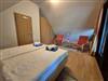Eine stabile Wendeltreppe führt ins OG. Hier befindet sich ein SZ mit Balkon mit einem Doppelbett und Blick