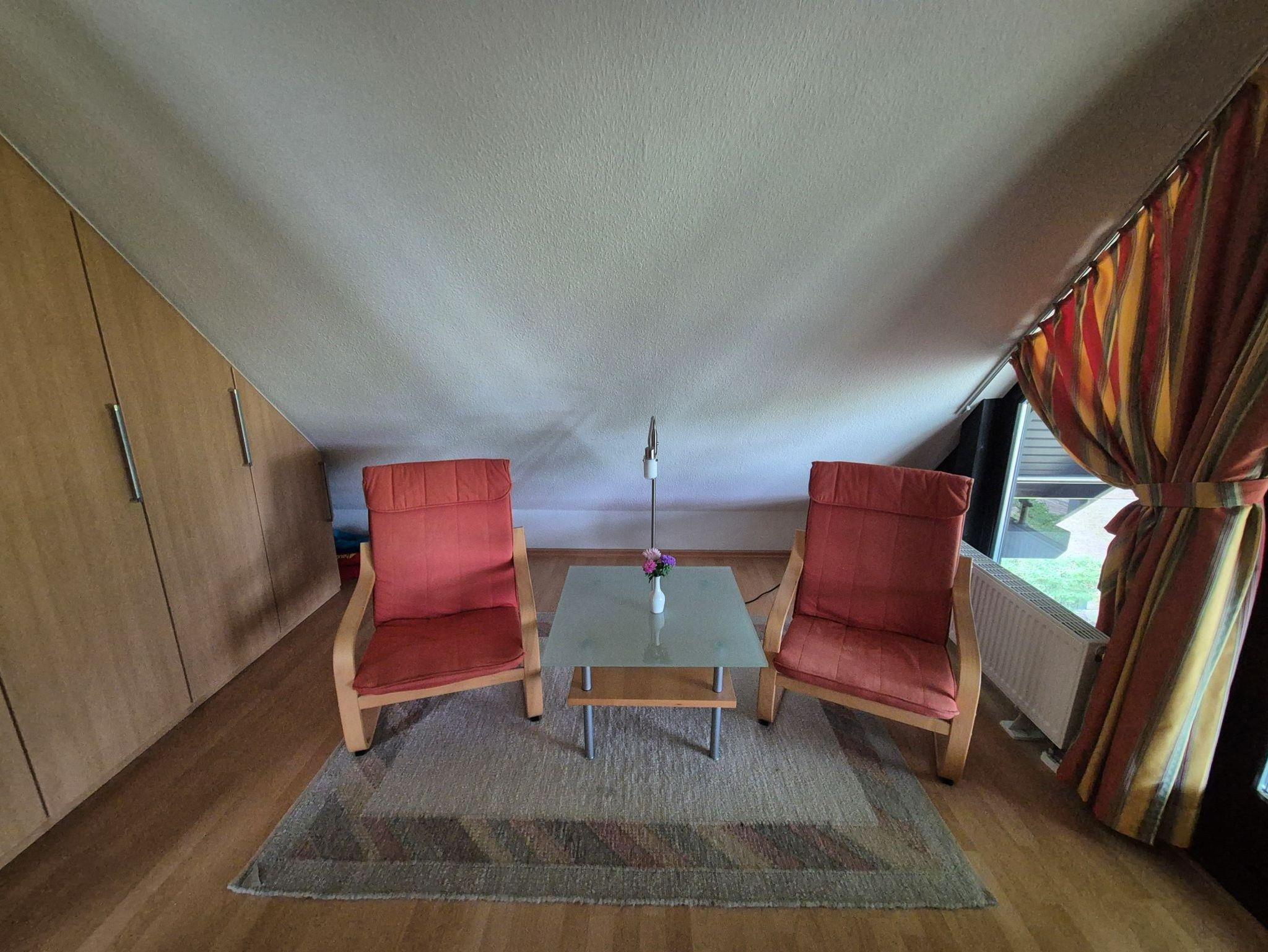 Sie können auf der Terrasse verweilen oder sich auf dem goßzügigen Naturgrundstück, welches von Büschen und Buchen umgeben ist,erholen.