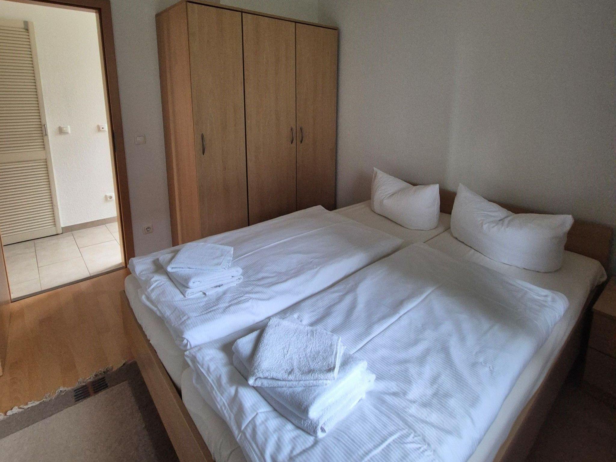 aufs Wasser. Nebenan ein SZ mit 2 Einzelbetten und ein Wannenbad mit Waschmaschine und Trockner.
