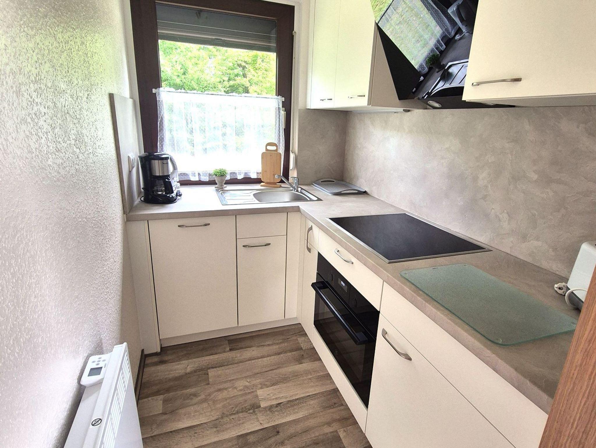 • Küche mit Herd, Backofen, Geschirrspüler, Kaffee-Filtermaschine, Wasserkocher & Toaster