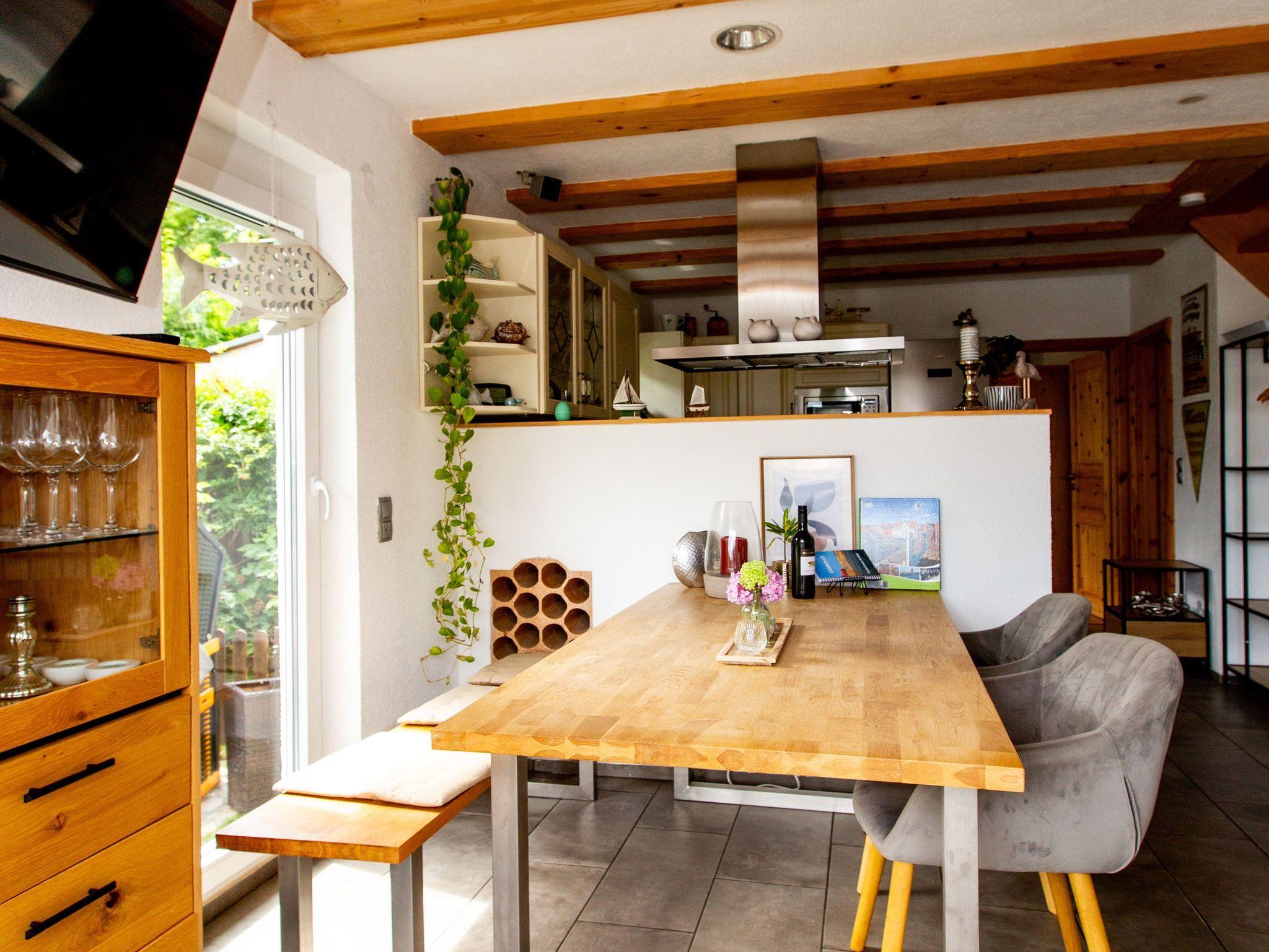 Sie erwartet ein modern ausgestattetes Ferienhaus auf einem eigenen, eingezäunten Gartengrundstück mit zwei Terrassen und einen Balkon der ihnen einen fantastischen Ausblick über den Plauer See bietet. Unser Garten mit Strandkorb lädt sie zum Verweilen, lesen oder einfach nur chillen ein. Und für die Grillmeister unter ihnen haben wir eine Außenküche eingerichtet mit allem Komfort um ihre Familie oder Freunde zu verwöhnen. Das Haus ist folgendermaßen aufgeteilt: Im Erdgeschoß befindet sich ein Schlafzimmer mit Twinbett 1,60 m * 2,00m, ein Duschbad mit Doppelwaschbecken und der 36 qm große Wohn- und Essbereich mit Kamin und einer offenen Küche von der sie beim Kochen auf den See schauen können, alle Räume sind mit Fußbodenheizung. Im Dachgeschoß befindet sich ein Schlafzimmer mit 2 getrennten Betten, ein Schlafzimmer mit einem Boxspringbett 1,80 m * 2,00 m und einem Babybett 1,20m *0,60 m, der Balkon mit fantastischen Blick über den Plauer See und ein Bad mit Badewanne. Alle Schlafzimmer verfügen über einen modernen Smart TV Fernseher, im Wohnbereich haben wir einen 55 Zoll großen OLED Fernseher, Internet über Glasfaser liegt in allen Räumen an, die Fenster sind mit Außenrollos und Fliegennetzen versehen. Die schöne, große Landhausküche ist mit allem ausgestattet (Induktionsherd, Backofen, Geschirrspülmaschine, Mikrowelle, Senseo Kaffeemaschine, Mixer, Toaster, Eierkocher, Wasserkocher, Brotscheidemaschine, Kühl- und Gefrierkombination und vieles mehr). Im Wohn- Essbereich steht ihnen eine moderne Ledercouch, ein Kamin für kalte Tage und ein großer Esstisch zur Verfügung. Unsere Terrasse am Wohnbereich hat eine gemütliche Sofaecke und auf der Terrasse an der Außenküche steht eine große Essgruppe. Ein Parkplatz ist auf dem Grundstück, weitere kostenfreie Parkplätze befinden sich ganz in der Nähe. Für unsere kleinen Gäste steht eine komplette Kinderausstattung (Hochstuhl, Kindergeschirr, Spielzeug, Bücher, Treppengitter usw.) zur Verfügung.