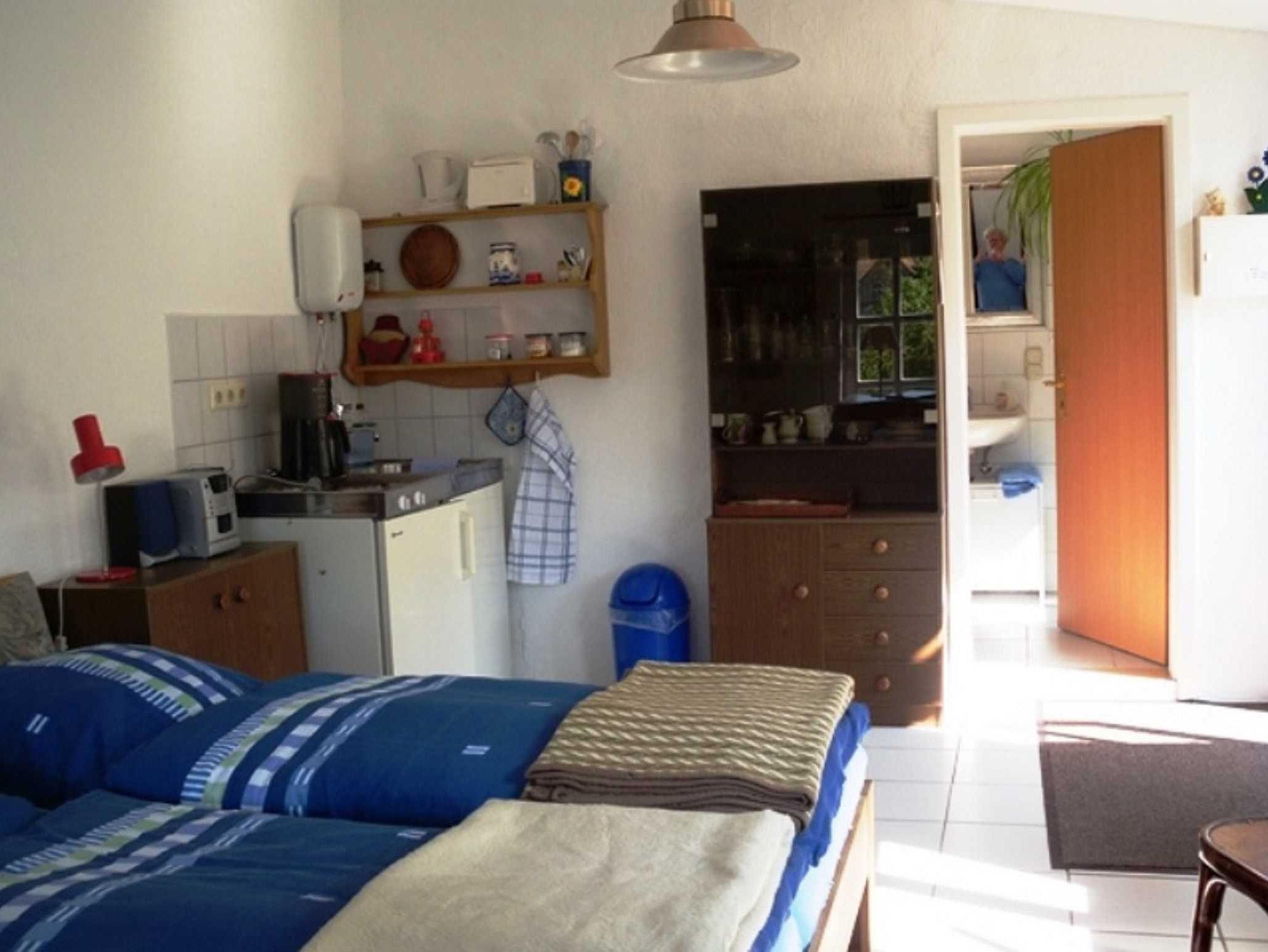 Das ebenerdige Ferienzimmer hat eine gemütliche Gesamtausstattung. Ein kombinierter Wohn- und Schlafraum mit einem Doppelbett und Sitzecke, sowie einer Küchenzeile und Dusche und WC bieten Platz für 2 Personen.