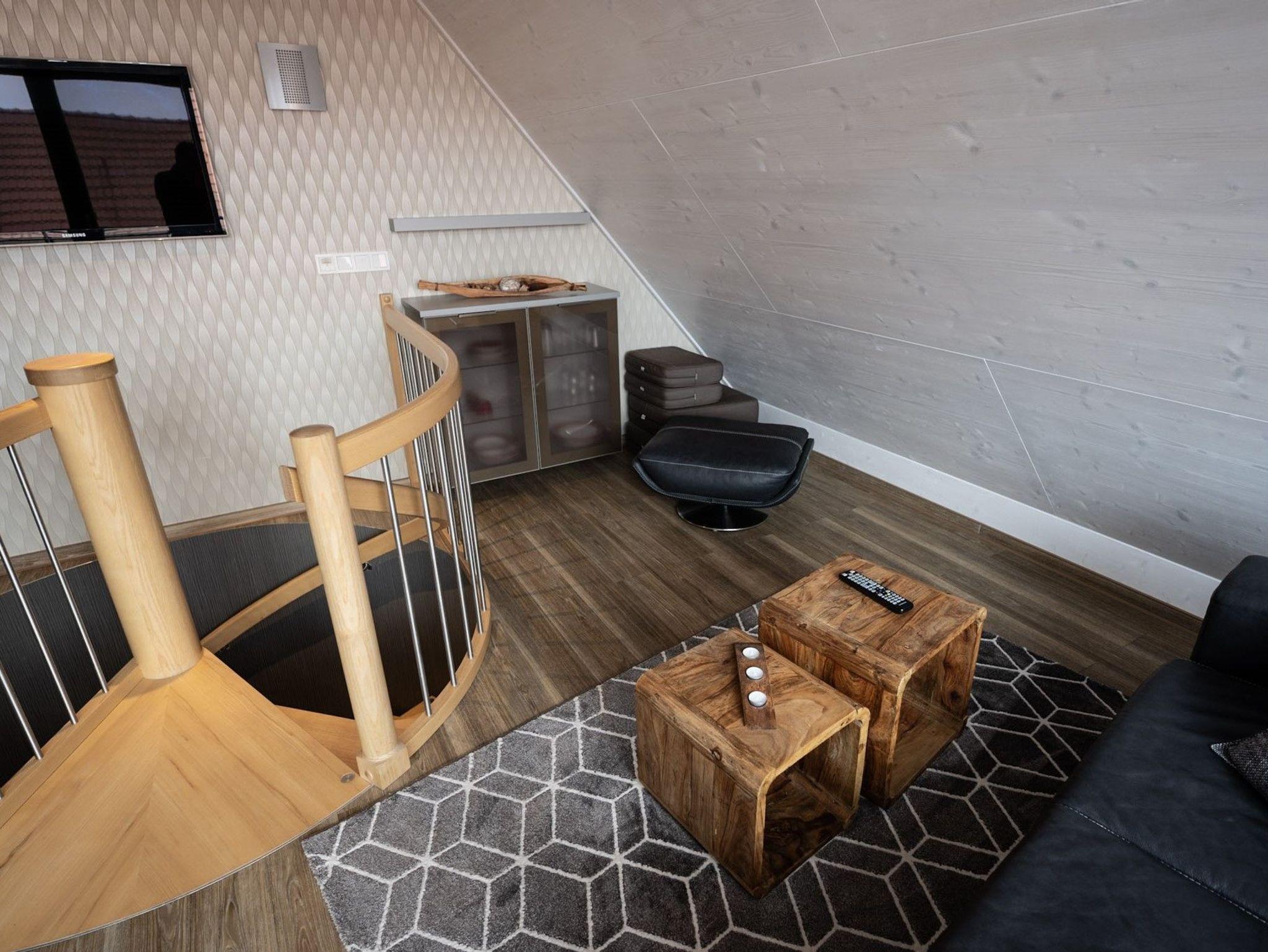 Über zwei Etagen, Ober- und Dachgeschoss - verbunden über eine Wendeltreppe, erstrecken sich die Appartements Burgturm und Hubbrücke. Je nach Belegung kann auch das gesamte Haus gemietet werden. Insgesamt finden bis zu 6 Personen Platz.
