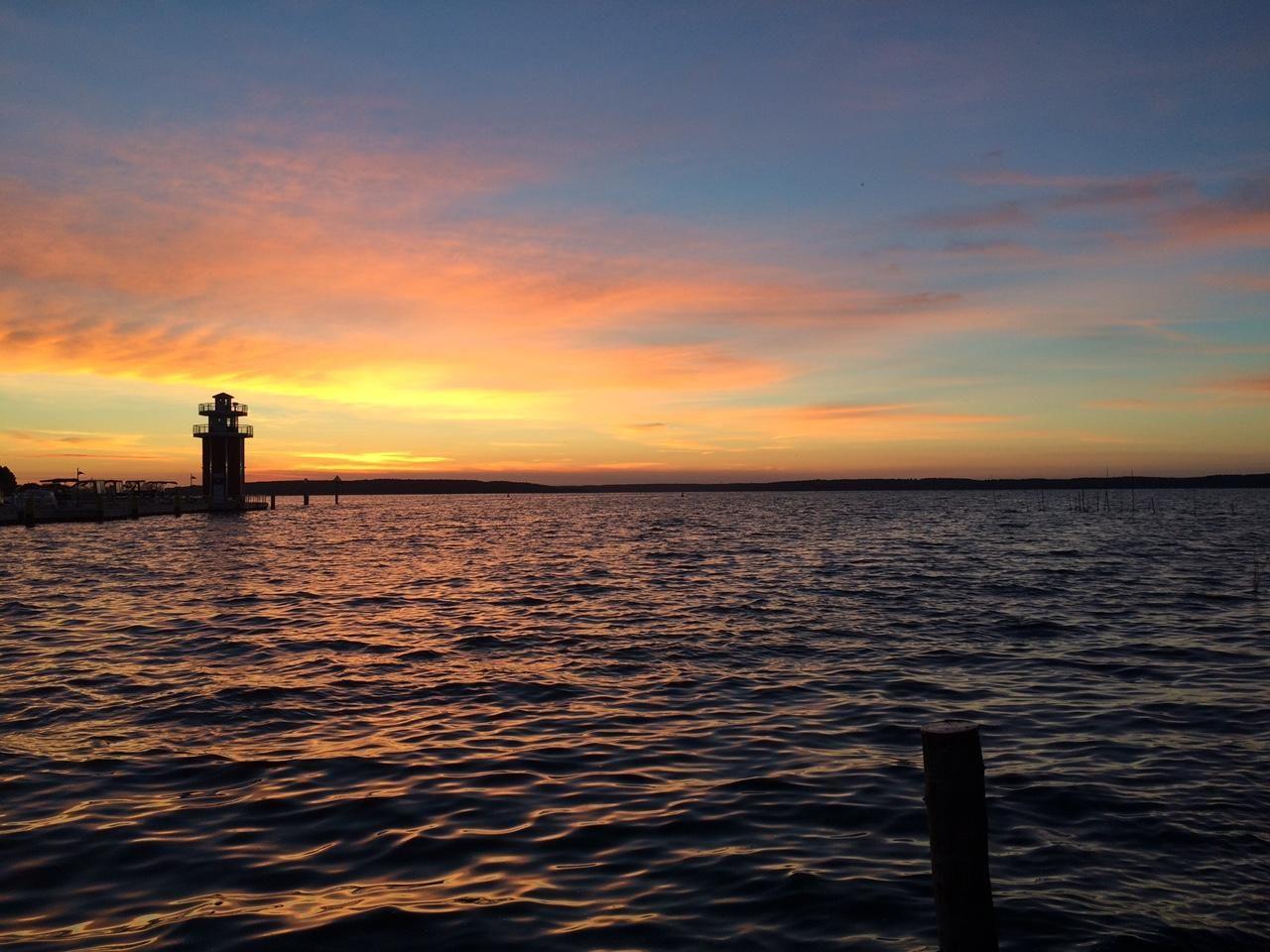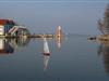 Der direkte Blick auf den Hafen und den dahinter liegenden See vermittelt ein maritimes Flair.