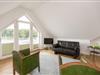 Im Dachgeschoss mit seiner besonderen Höhe und Dachschrägen ist das Wohnzimmer mit TV, Zugang zum 2. Balkon und Möglichkeit zur Aufbettung (1-2 Personen) . Ein guter Ort zum Rückzug, gemütliches Lesen oder Fernsehen. Oder Sie sitzen einfach da und lassen sich vom Panoramablick überwältigen.
