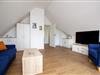 Die Wohnfläche von 108 m² erstreckt sich über zwei Etagen. In der ersten Etage befindet sich ein Schlafzimmer mit einem Boxspringbett (Liegefläche 1,80 m x 2,00 m), ein großer Ess-Wohnbereich mit integrierter Küchenzeile und ein großzügiges Tageslichtbad mit bodengleicher Dusche und zwei große Balkone (Süd-und West-Lage).