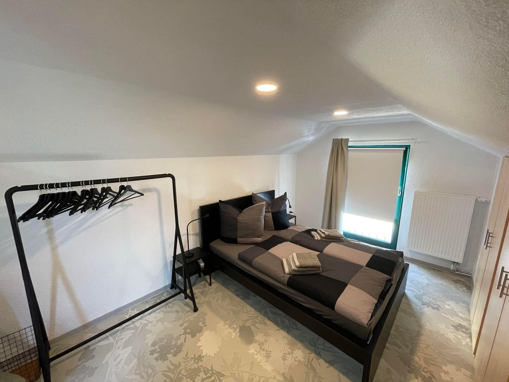 2. SCHLAFZIMMER - über Wendeltreppe erreichbar (Dachgeschoss), Bett 1,80x2 m, ruhige Lage, Balkontür mit Verdunklungsvorhang