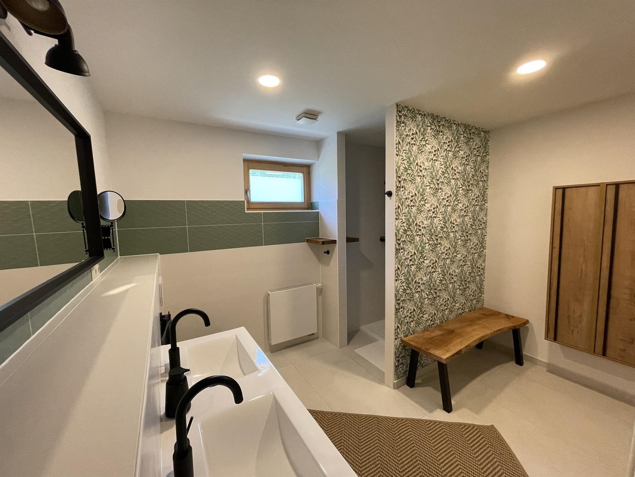 BAD/ WC - Das Hauptbadezimmer ist hell und modern ausgestattet - Doppelwaschtisch, ebenerdige Dusche, partielle Fußbodenheizung. Genug Stauraum und Ablagemöglichkeiten ergänzen die Funktionalität. Handtücher, ein gefüllter Seifenspender, Kosmetikspiegel und Föhn stehen für Sie bereit. Das kleinere WC ist mit Waschbecken, Spiegelschrank und einer kleinen Ablagemöglichkeit ausgestattet. WLAN steht kostenfrei zur Verfügung.