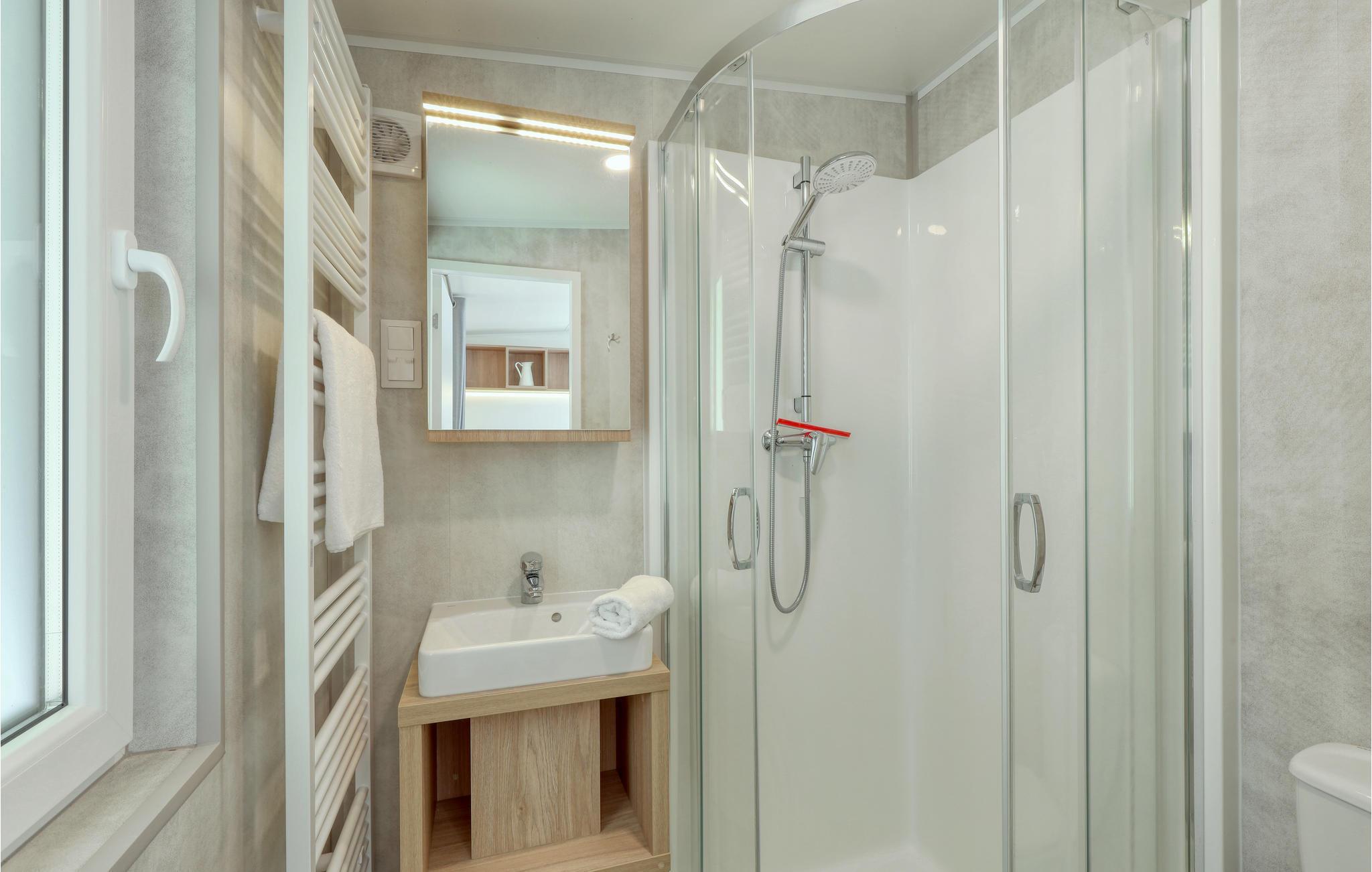 Der gemütliche Wohnbereich mit Schlafcouch, Essbereich und gut ausgestatteter Küchenzeile lädt zu gemeinsamen Stunden mit der Familie ein. Im separaten Schlafzimmer lässt es sich wunderbar träumen. Die Schlafcouch im Wohnbereich ist 170 cm lang und daher nur für Kinder geeignet. Zusätzlich verfügt das Tiny Haus über ein eigenes Bad mit Dusche.