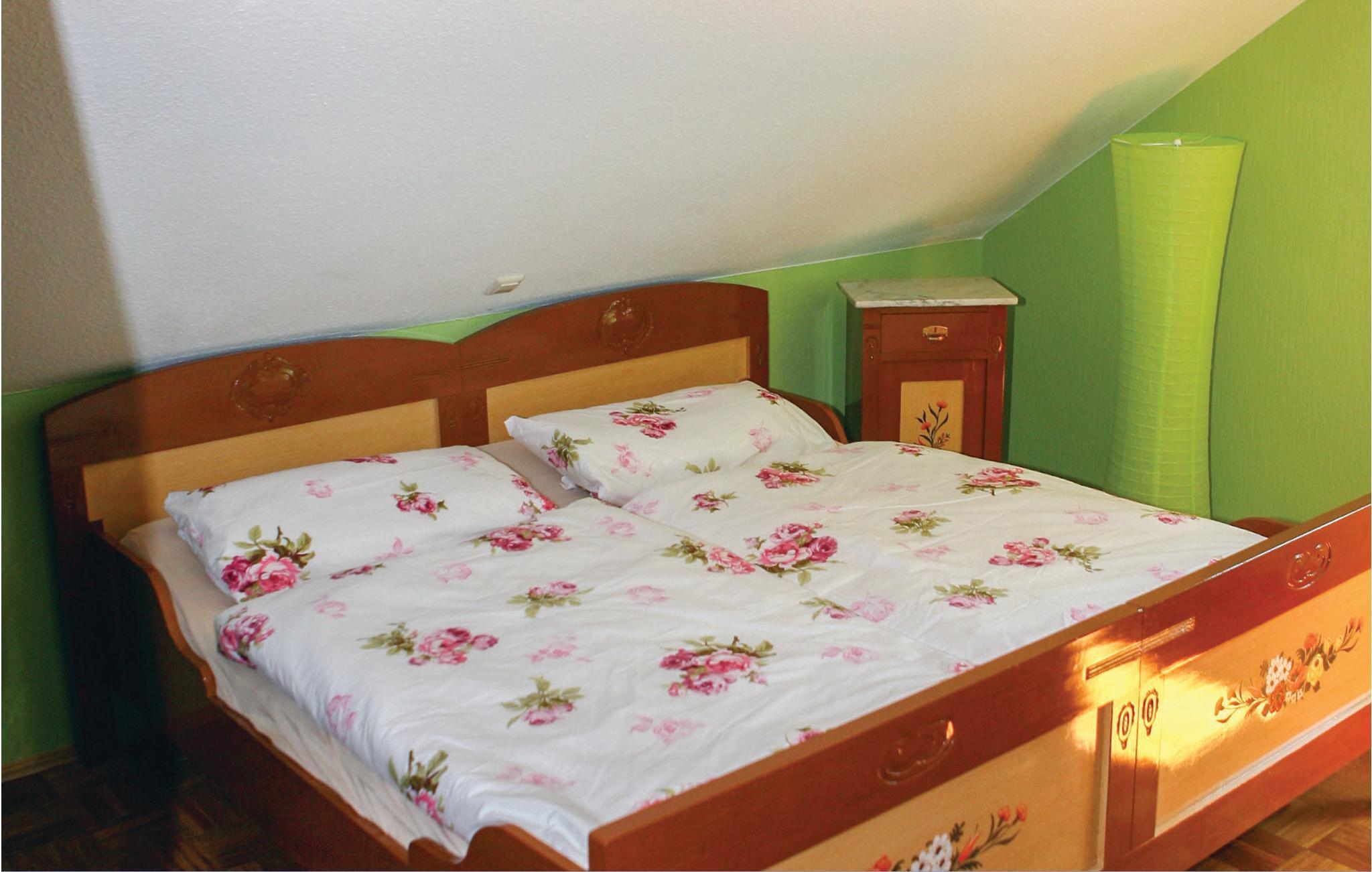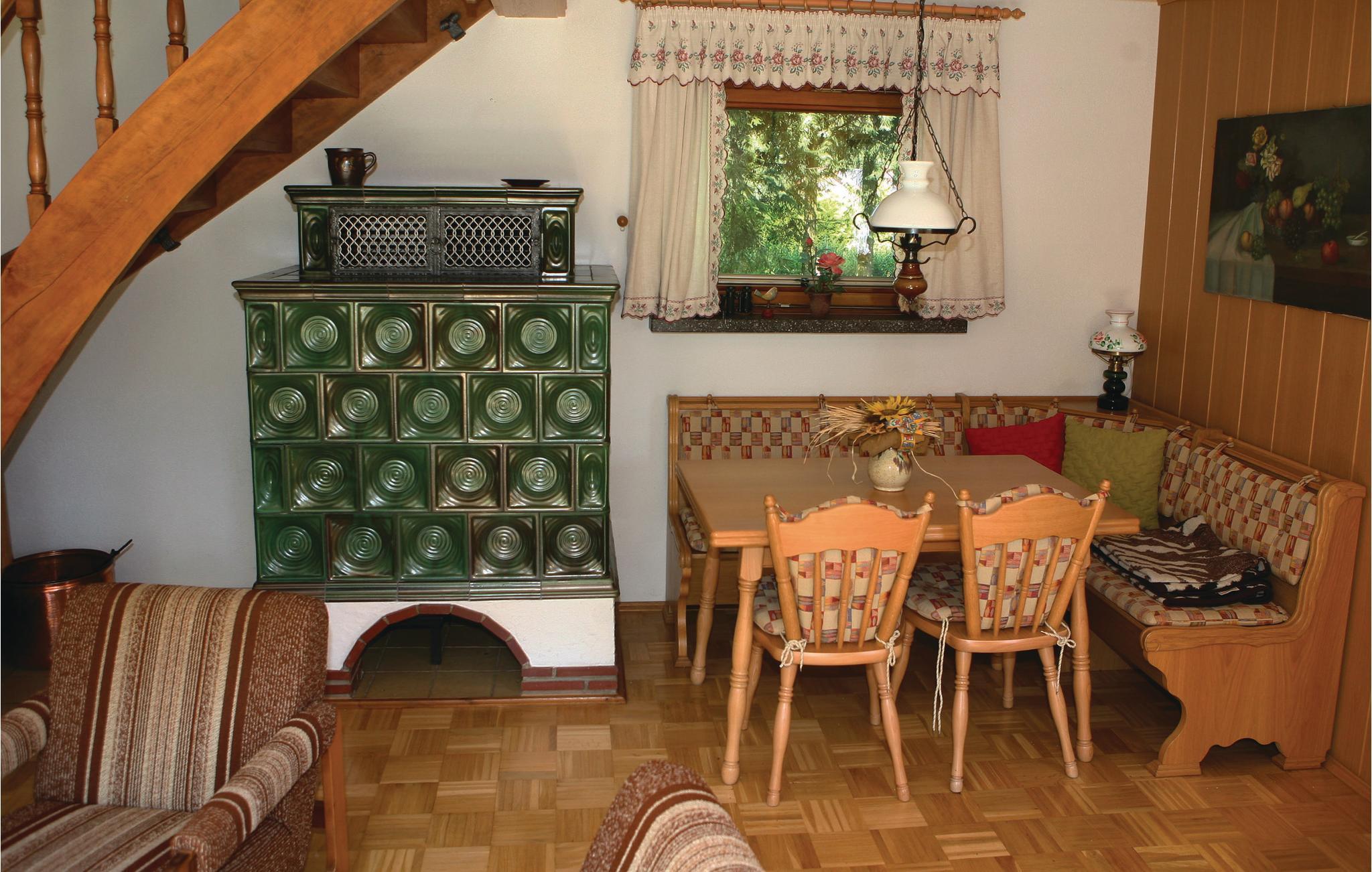 Im Jahr 2017 wurde das Haus teilweise renoviert, es ist rustikal eingerichtet. Der Wohn- Ess- und Kochbereich befindet sich im Erdgeschoss, der Kachelofen sorgt hier für ein gemütliches Ambiente. Die Schlafzimmer im Dachgeschoss sind mit jeweils einem Doppelbett ausgestattet. Besonders schön ist das alte, rustikale Bett mit Bauernmalerei.