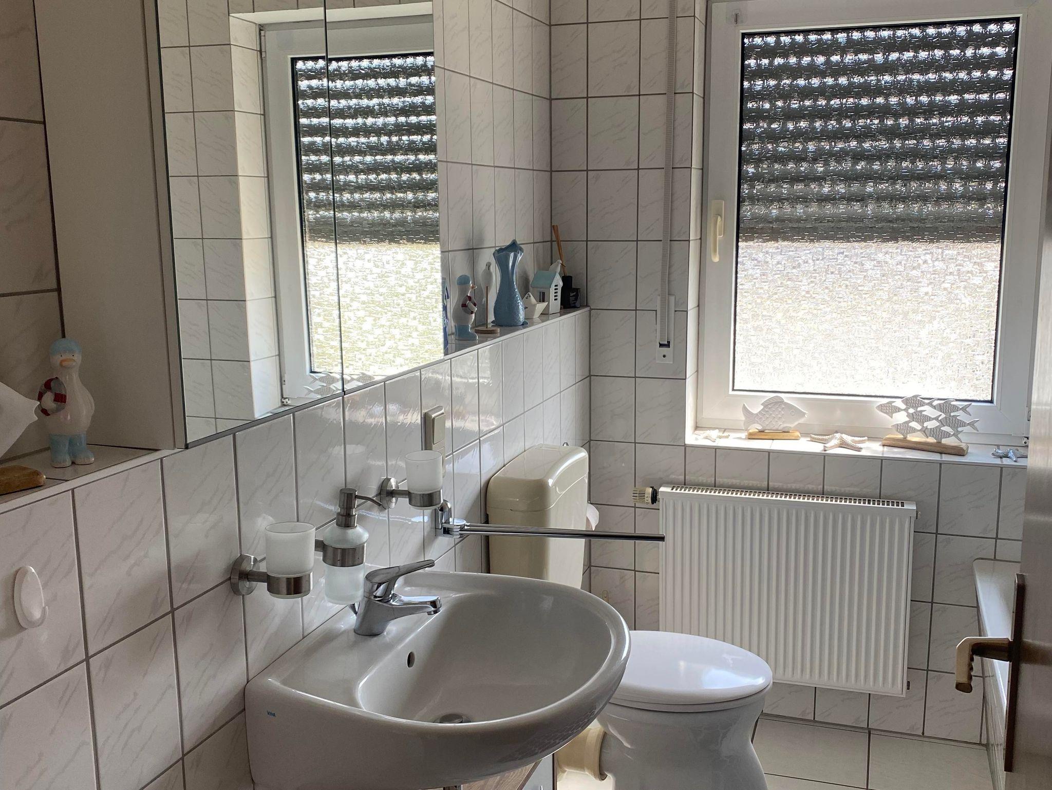 Es sind zwei Schlafzimmer vorhanden mit einem Doppelbett und zwei Klappbetten. Die Wohnküche mit Küchenzeile hat einen Essplatz für 4 Personen und eine Spülmaschine. Im Wohnzimmer ist eine Sitzecke vorhanden, die man zu einer Schlafcouch umfunktionieren kann. Bad mit Dusche, Badewanne, WC, Waschbecken und Fön, sowie TV und kostenfreies WLAN und eine Terrasse im EG bzw. ein Balkon im 1. OG sind ebenfalls vorhanden.