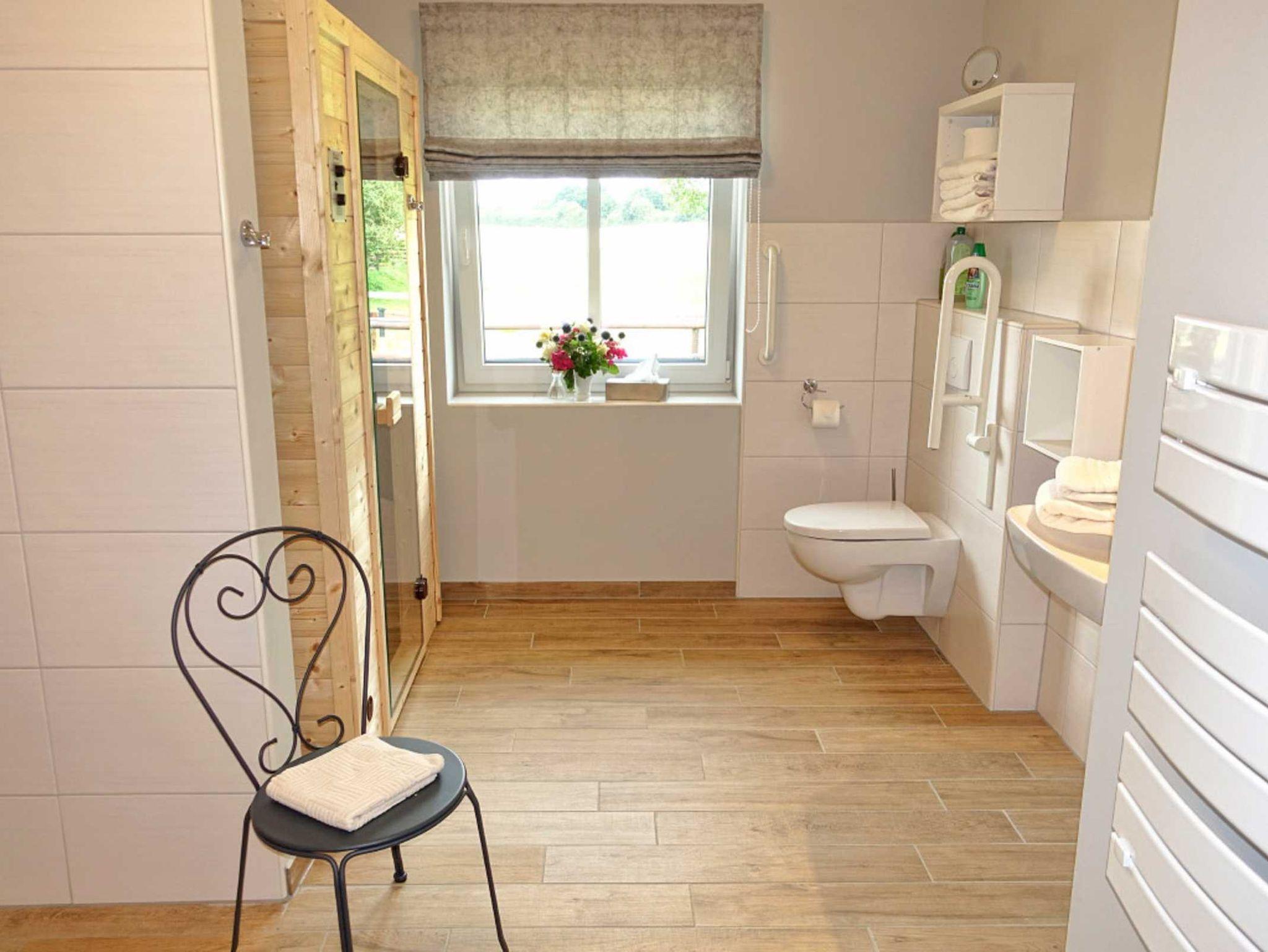 Das ebenerdige Ferienhaus Landhaus ist im modernen Stil mit romantischen Akzenten gestaltet und bietet bis zu 6 Personen viel Platz zum Wohlfühlen und Barrierefreiheit: