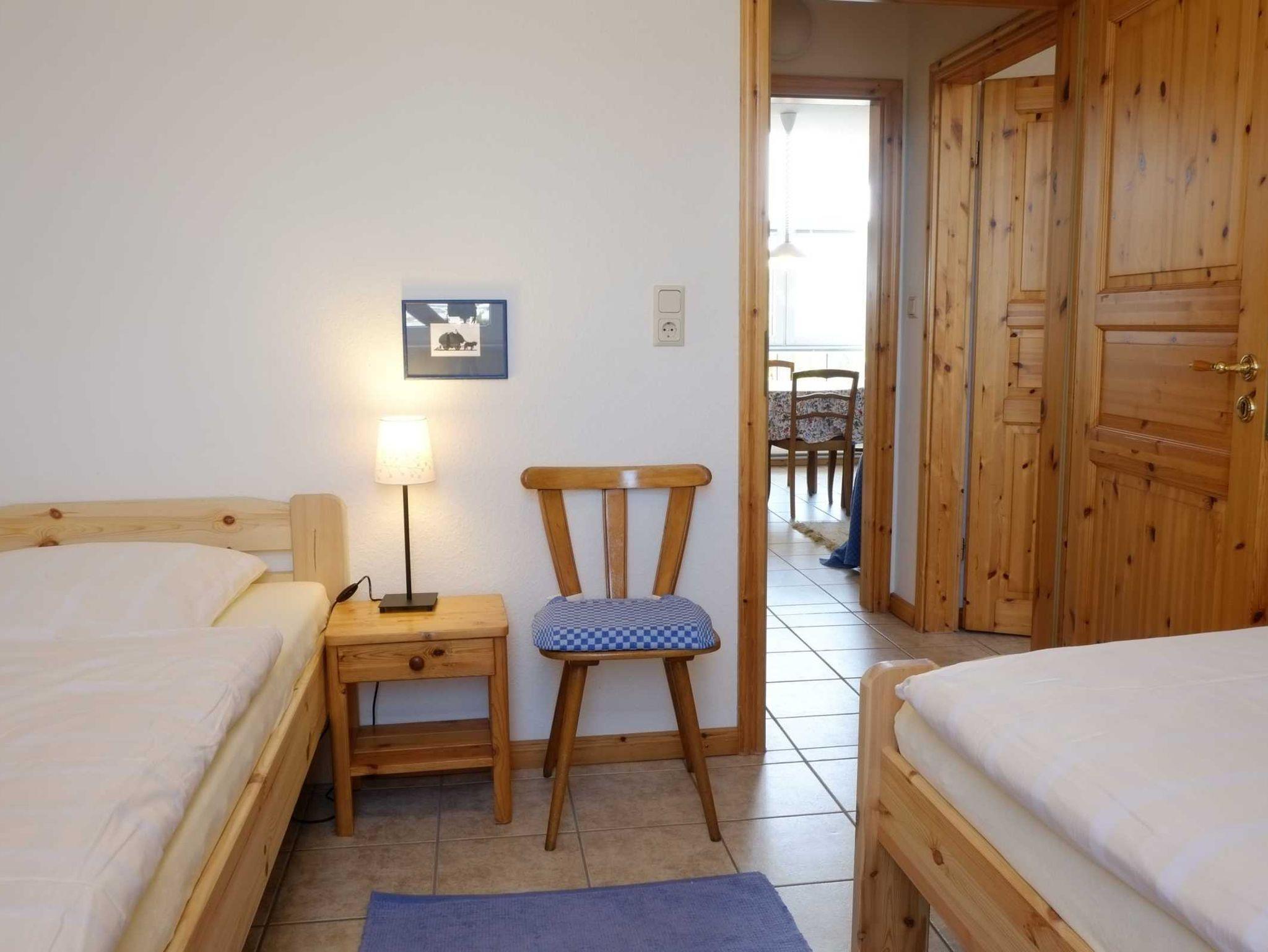 Einzelbetten, einen großzügigen Wohnraum und ein Duschbad. Im Wohnraum gibt es