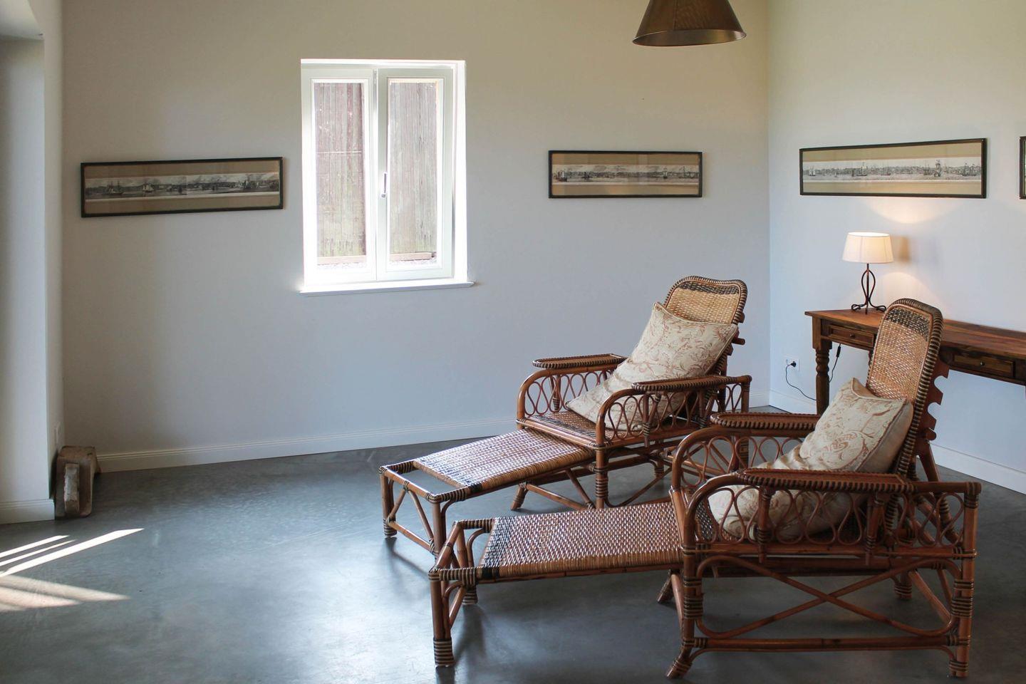 Eingebettet zwischen Stall und dem Ostseehof Langfeld liegt diese besondere kleine Wohnung mit traumhaftem Blick über die hauseigene Koppel auf den Leuchtturm von Falshöft. Die nach ihm benannte „Leuchtturmwohnung“ verfügt über ein geräumiges Schlafzimmer mit Doppelbett, einem großzügigen Badezimmer mit Badewanne und ein großes Wohnzimmer, das in die Küche mit Esstisch übergeht.