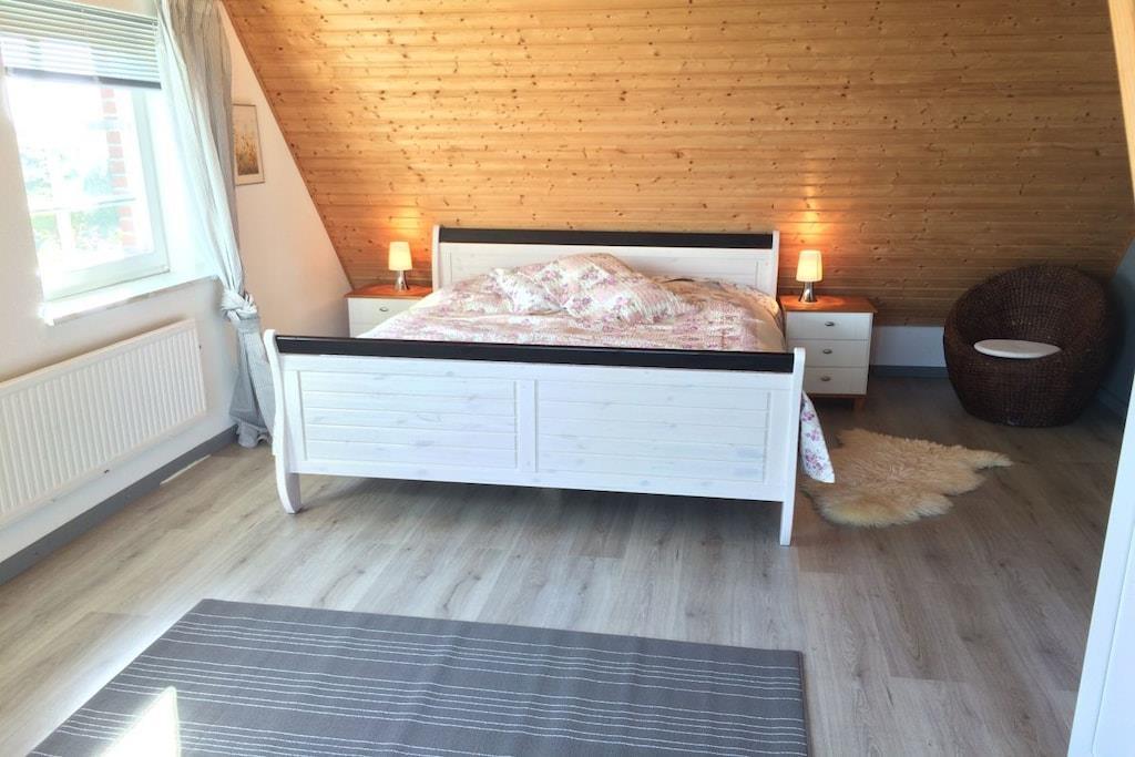 Das Deichquartier ist ein freistehendes Einfamilienhaus mit großem Garten und Weitblick direkt am Binnendeich in der Nähe von St. Peter-Ording. Hinter dem Deichquartier steckt die Idee, ein Ferienhaus anzubieten in dem alle gern Urlaub machen, insbesondere aber Familien mit Kindern. Auch Ihr Hund ist herzlich willkommen. Da wir selbst mit zwei kleinen Kindern und einem Hund unterwegs sind, war es oft schwierig die richtige Bleibe zu finden. Wenn das dann gelungen war, schien es fast unmöglich, alles Notwendige in einem Auto unterzubringen. Deshalb hoffen wir, dass Sie im Deichquartier vieles bereits vorfinden, was Sie sonst immer (vergeblich) versucht haben, in den Kofferraum zu quetschen.