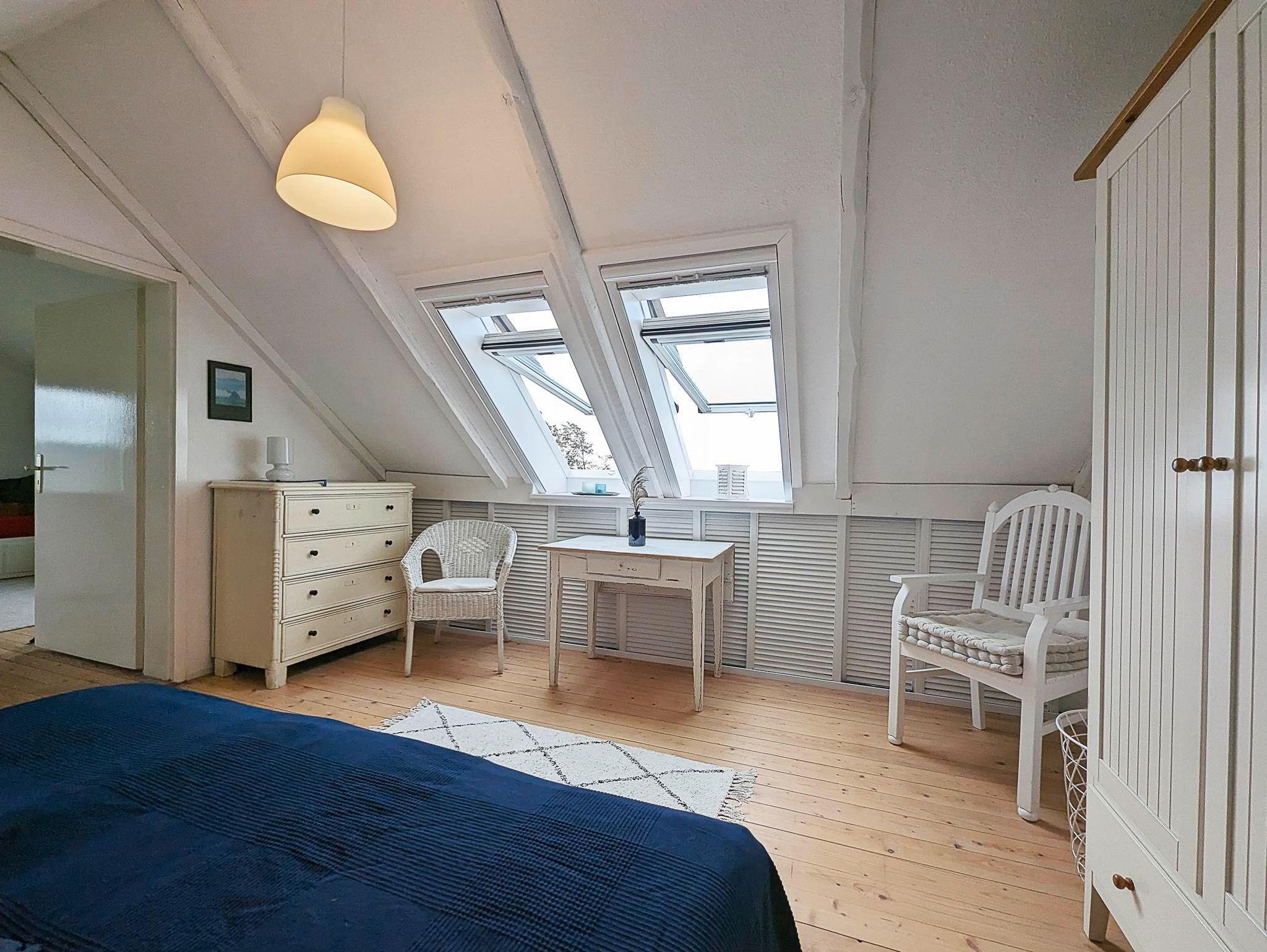 Im Obergeschoss liegen der gemütlich eingerichtete, kombinierte Wohn-/Schlafraum mit Sitzecke und SAT-TV, einem Schlafplatz für 1 Person, sowie ein separater Schlafraum mit einem Doppelbett.