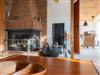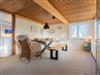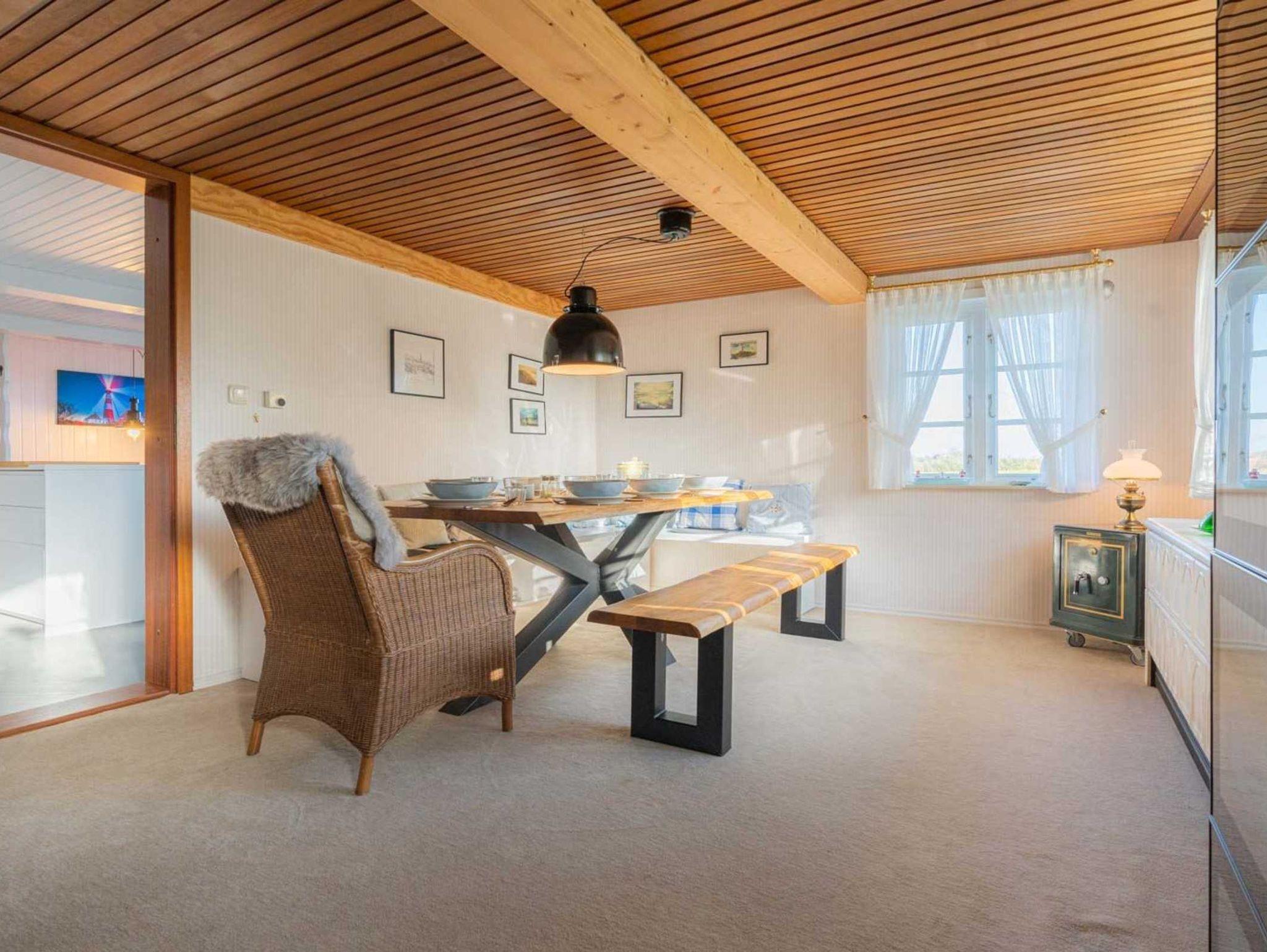 Separates Esszimmer mit Esstisch, gemütlichen Bänken und einem Sessel für insgesamt 7 Personen. Im Esszimmer befindet sich eine Soundbox der Marke B&O.