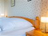 Schlafzimmer mit Doppelbett (2x 90x200cm), Kleiderschrank, Kommode und Sessel.