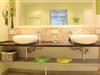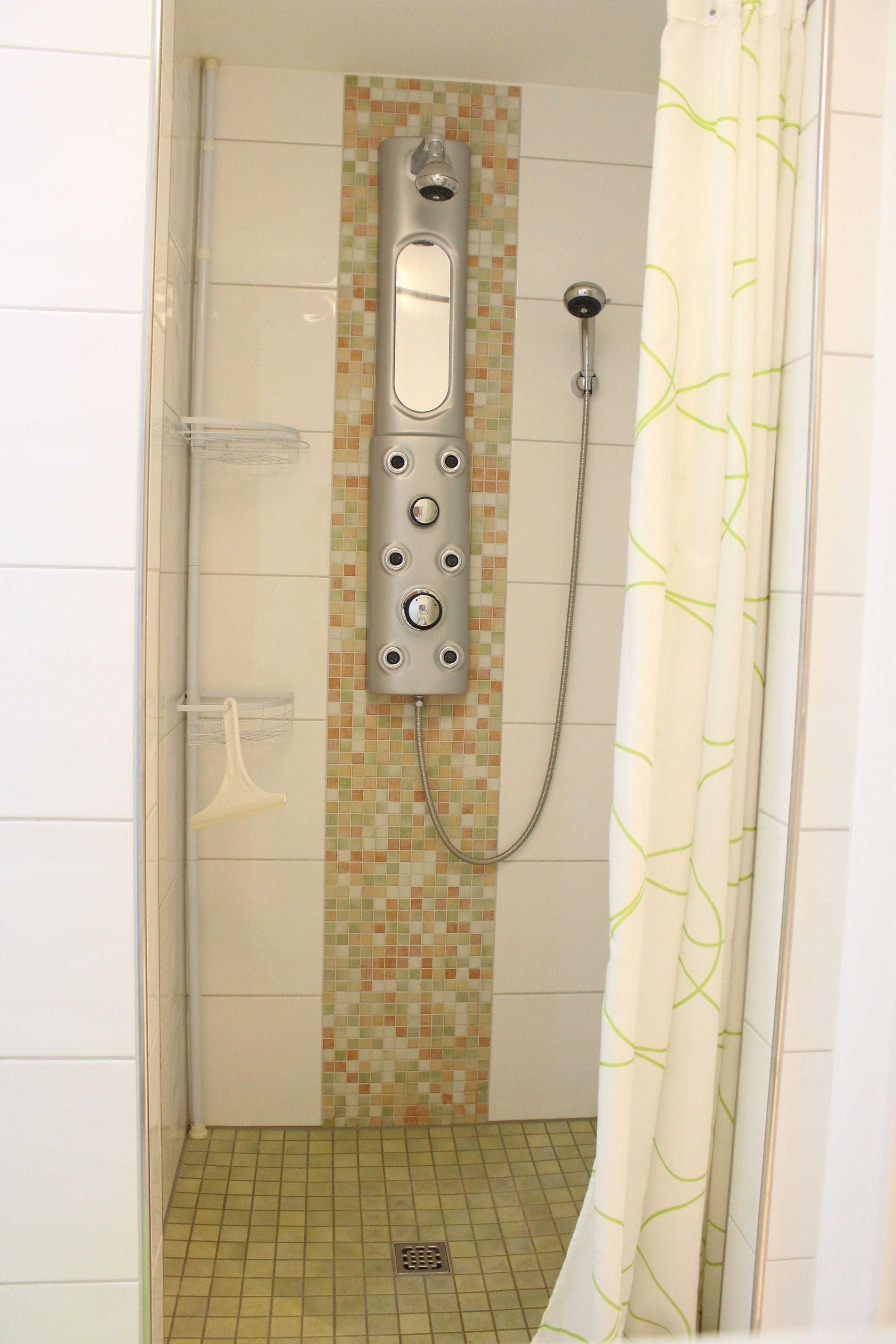 Der Badbereich besteht aus einem Waschraum mit separatem WC und einem durch eine Glastür abgetrennten Duschraum (Wellness-Dusche) mit WC.