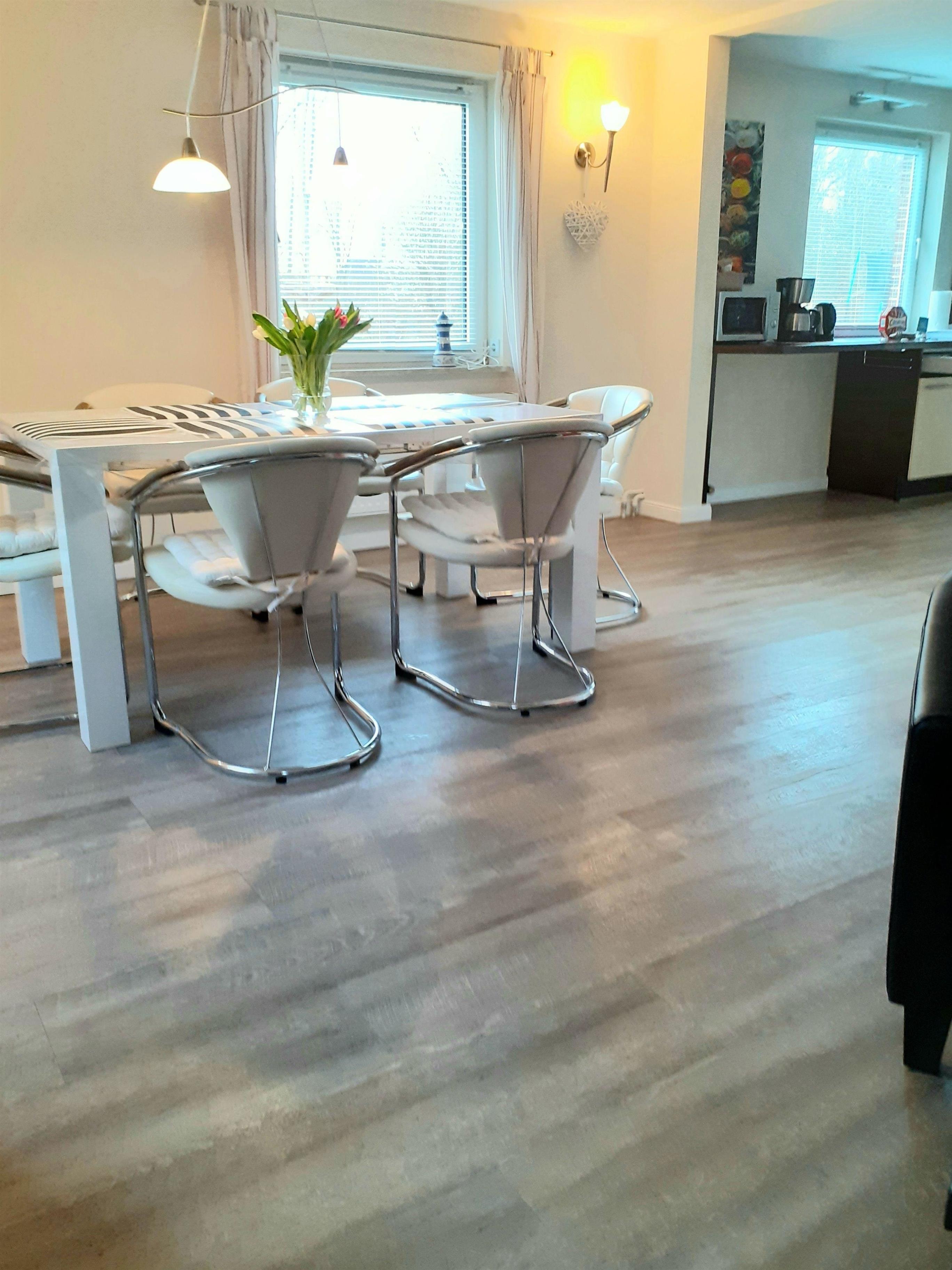 Die Räume sind hell und freundlich eingerichtet. Der pflegeleichte Bodenbelag im EG besteht aus Design-Planken, im OG finden Sie einen Dielenfußboden vor.