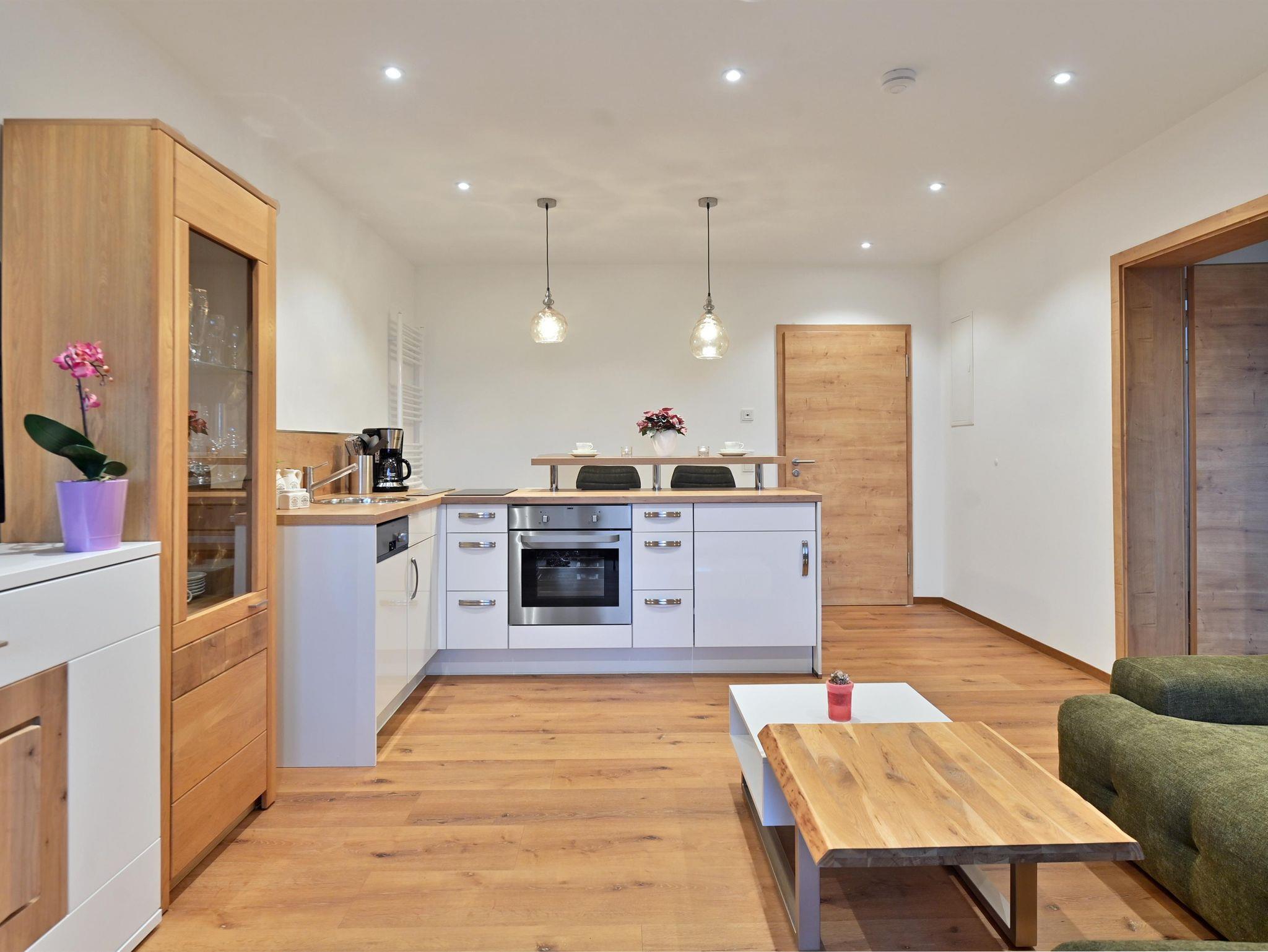 Im modernen Landhausstil eingerichtete Ferienwohnung auf ca. 40qm mit 2 Balkonen mit Blick auf die Rhöner Berglandschaft insbesondere den Kreuzberg und den Heidelstein. Platz für 1-3 Personen. Gemütliches Wohn- Esszimmer mit TV. Komplett ausgestattete Küche mit Geschirrspüler, Kühlschrank inkl. Gefrierfach, Herd mit elektrisch versenkbarer Dunstabzugshaube, Backofen, Wasserkocher und Kaffeemaschine. Schlafzimmer mit Doppelbett. Badezimmer mit Dusche/WC, großem beleuchtetem Spiegel, Kosmetikspiegel. WLAN und Parkplatz kostenfrei. Frühstück und Brötchenservice buchbar. Alle Wohnungen verfügen über Brandschutztüren und Rauchmeldeanlage. Ski- und Fahrradraum. Poppenhausen ist 4km, Gersfeld 6km entfernt. Bushaltestelle in 3 Gehminuten vom Haus. Shuttleservice buchbar.