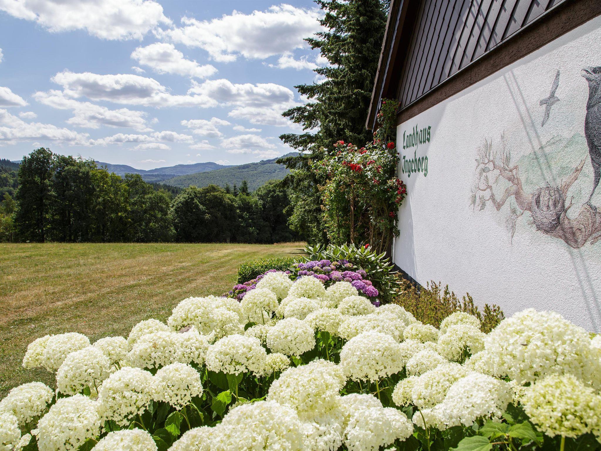 Unser Haus liegt auf ca. 600 Hm, in sehr ruhiger Lage. Das gesamte Anwesen erstreckt sich über eine Fläche von ca. 26000qm mit großem Garten, Damwildgehege Wiesen- und Weideflächen. Die meisten Appartements sind nach Süden, mit fantastischer, unverbauter Fernsicht zur Wasserkuppe und die Bayerische Rhön, ausgerichtet. Im Jahr 2024 wurden die Pensionszimmer zu den zeitgemäß, modernen und gemütlichen Appartements umgebaut.