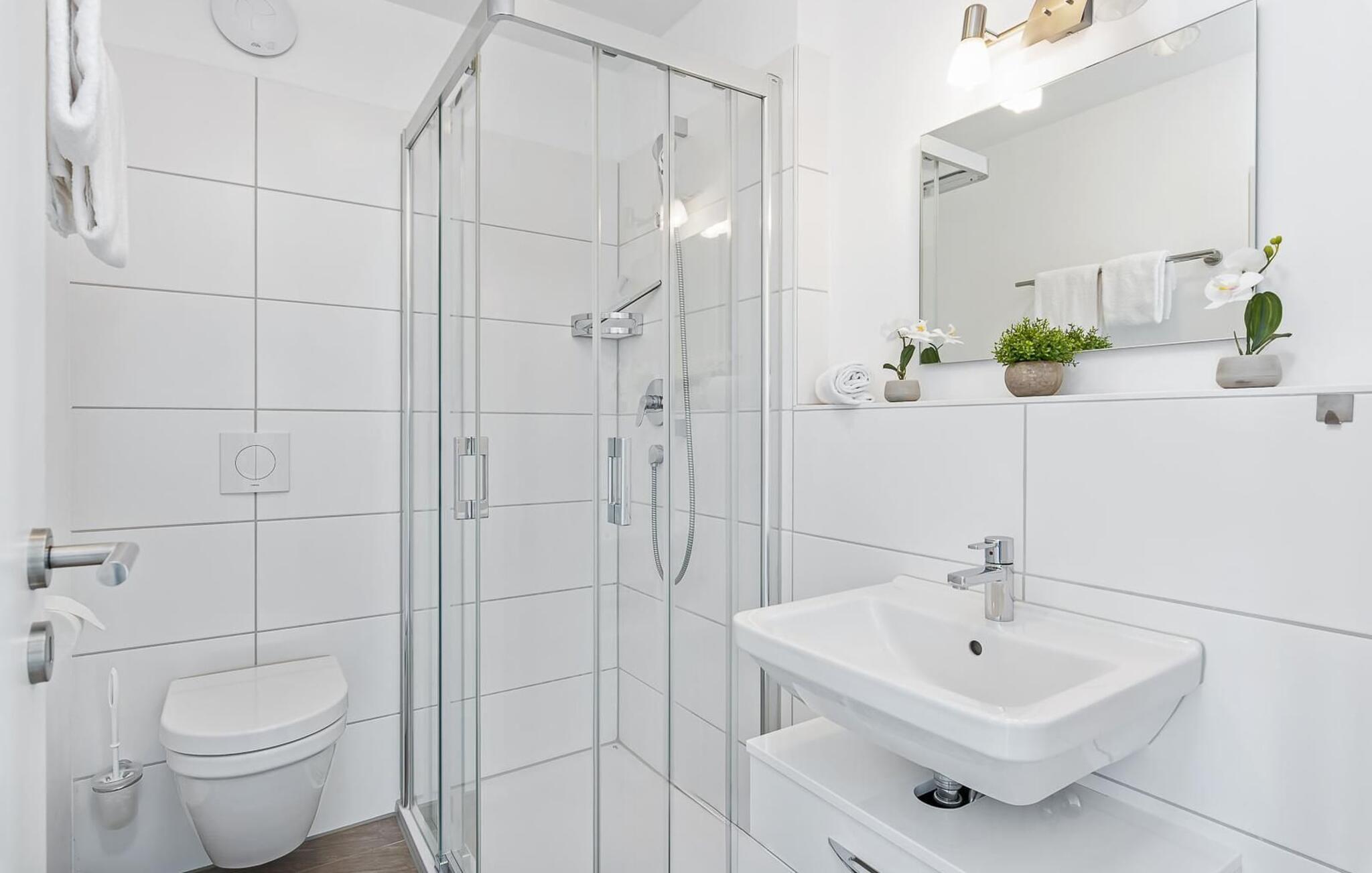 - WC mit warmem und kaltem Wasser, Dusche und Badewanne