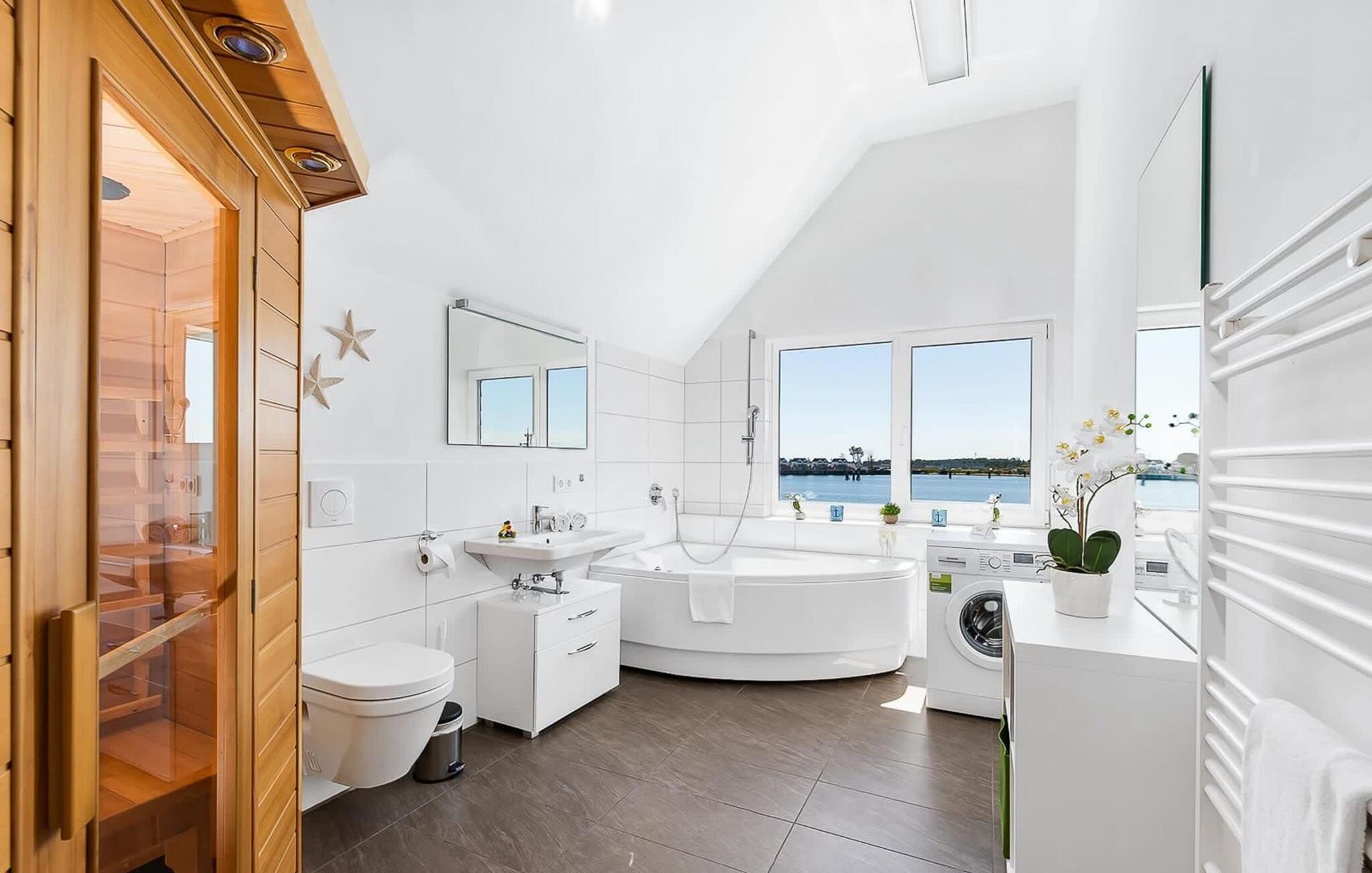 Moderne Maisonettewohnung Port 55 mit Panorama-Schleiblick und Wellness im OstseeResort Olpenitz.