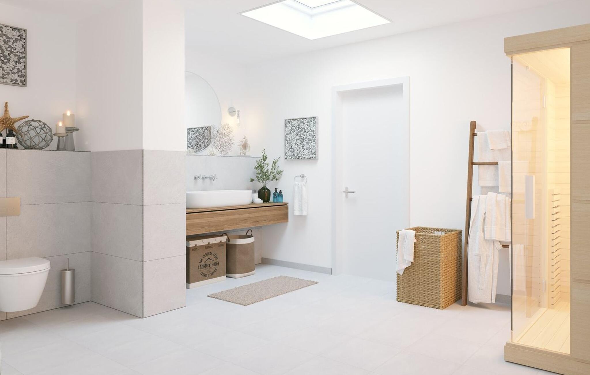 Zu der Penthousewohnung gehört ein schickes Bad mit bodengleicher Dusche, sowie einer InfrarotsaunaWellness pur!