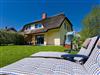 Die Terrasse ist ausgestattet mit Gartenmöbeln, Liegen, Sonnenschirm und eigener Strandkorb inklusive