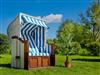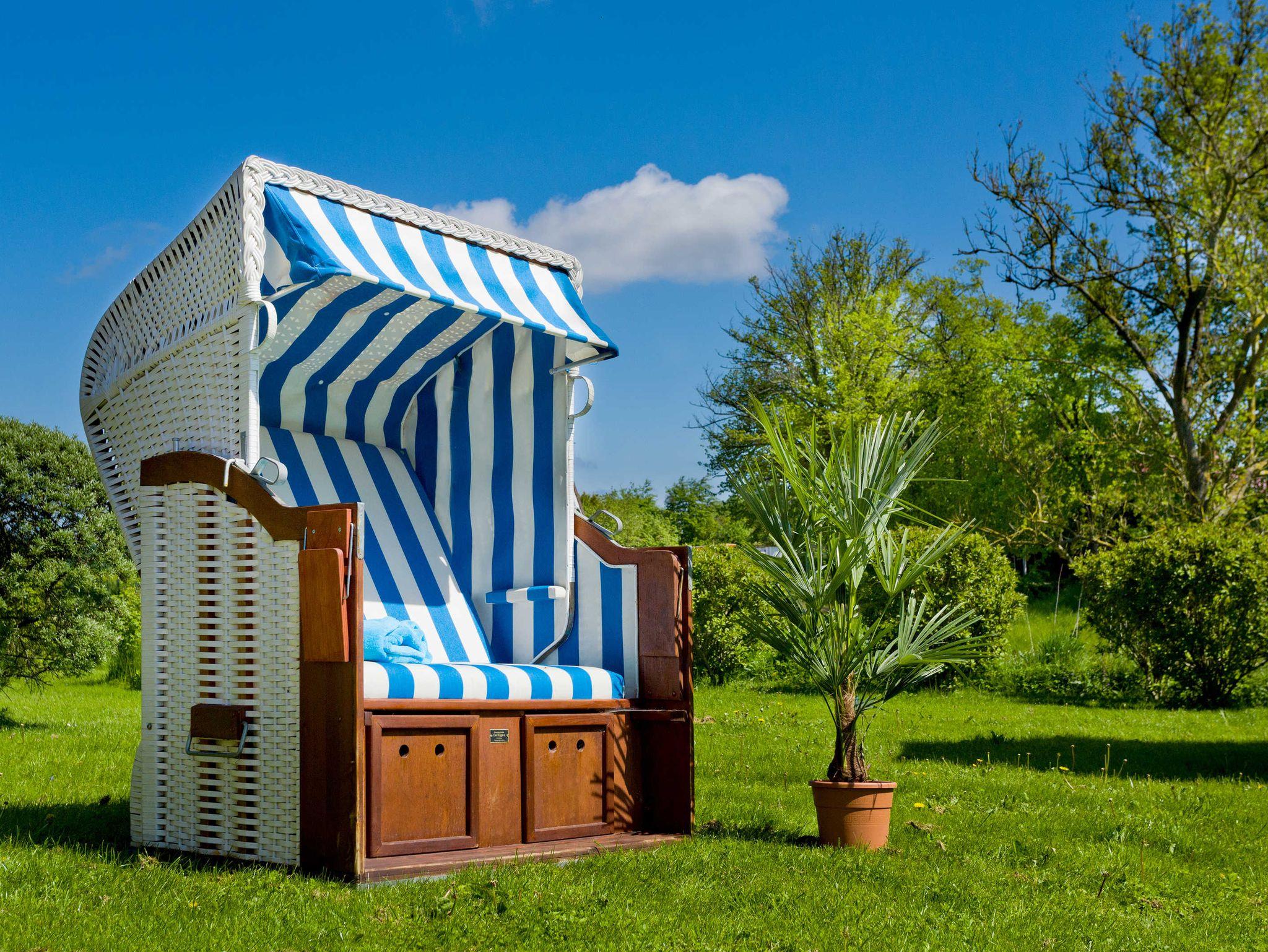 • eigene Gartenfläche mit Strandkorb und Gartenmöbel auf der Terrasse