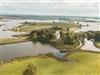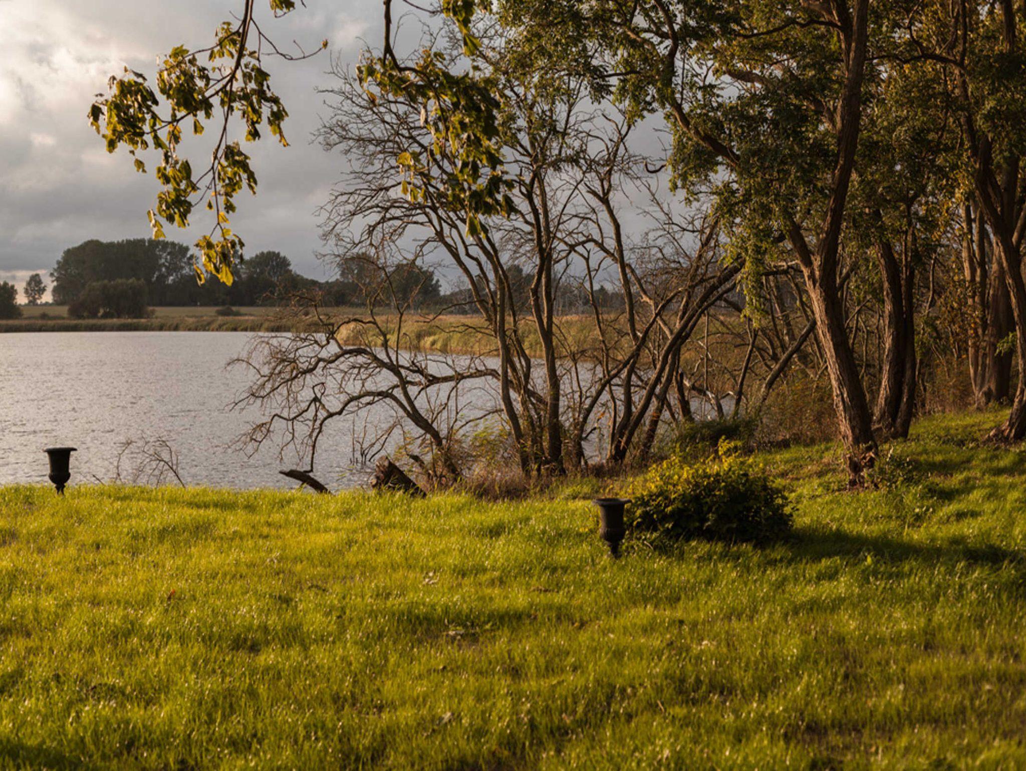 Die Grundmauern der alten Scheunenflächen des ehemaligen landwirtschaftlichen Guts sind wieder sichtbar gemacht worden. Der Ausblick von Haus und Park ist zu allen Seiten geprägt durch die Lage direkt am Wasser.