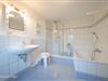 Das Herzstück bildet die gemütliche Wohnküche mit Zugang zur überdachten Terrasse – perfekt für den ersten Kaffee am Morgen oder laue Sommerabende im Freien. Im angrenzenden Wohnbereich laden das bequeme Sofa und die Leseecke zum Entspannen ein. Auf dieser Ebene befinden sich außerdem ein Schlafzimmer mit Doppelbett, ein Bad mit Dusche und Badewanne sowie ein Hauswirtschaftsraum mit Münzwaschmaschine.