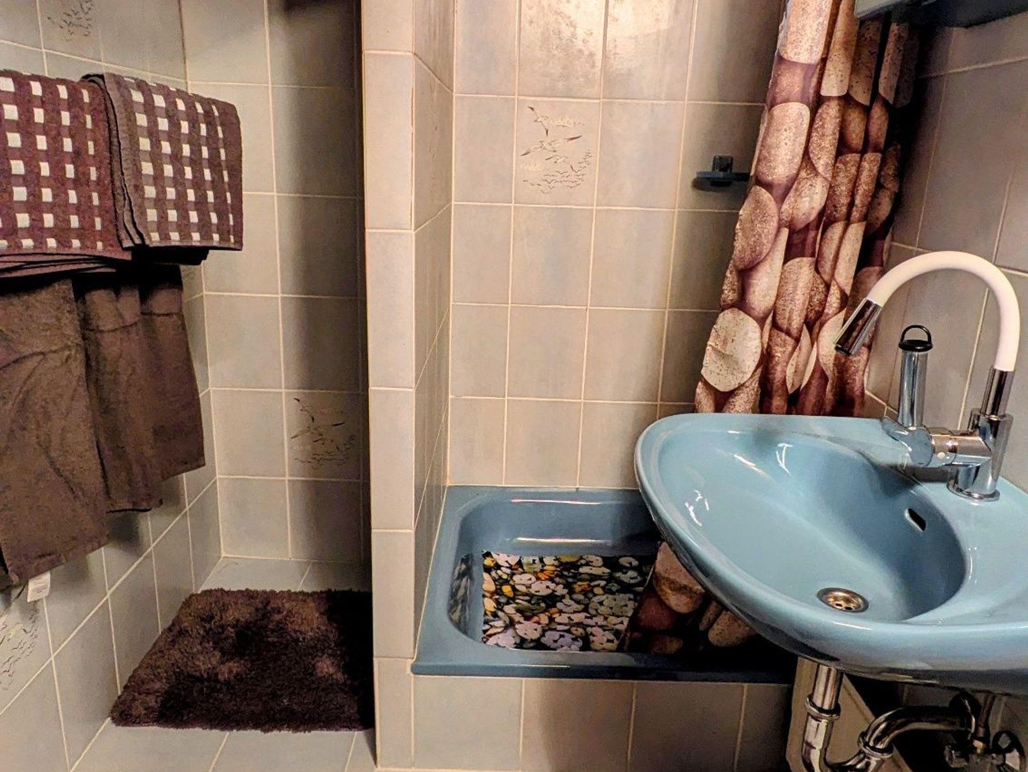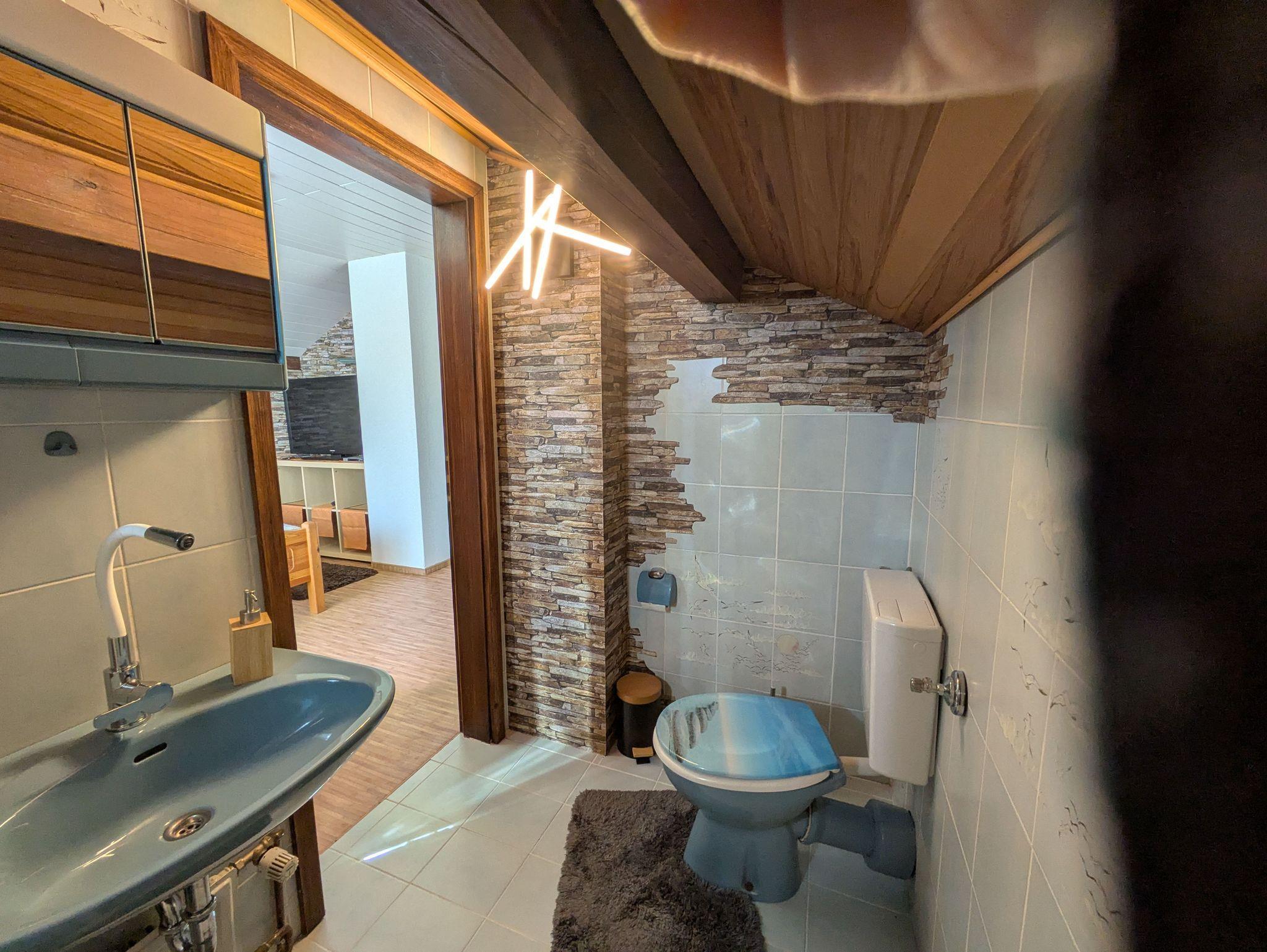 Im separaten Badezimmer finden Sie Dusche, WC und Waschbecken.
