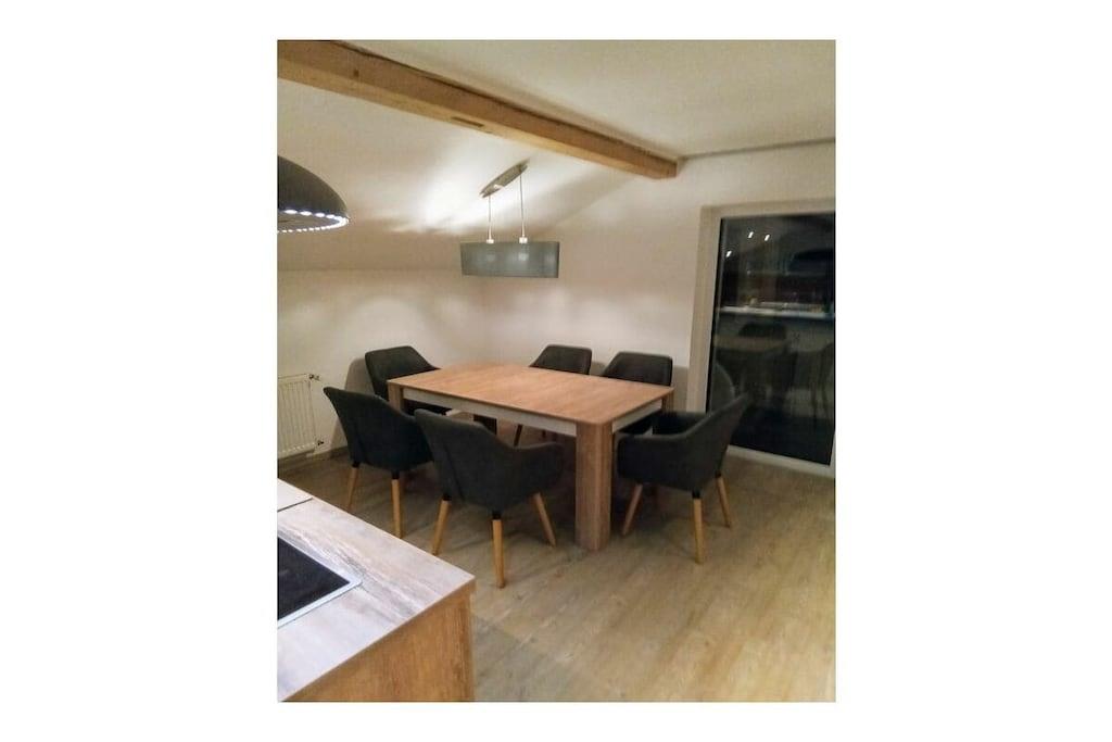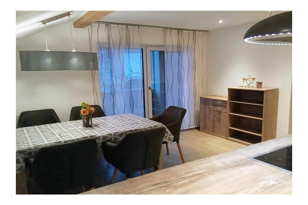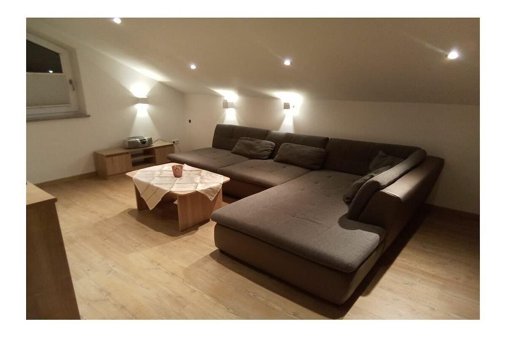 Es erwartet Sie eine gemütliche Ferienwohnung mit 95qm, mit 2 Schlafzimmern und 1 Wohnzimmer (Schlafmöglichkeiten für 6 Personen). neu renoviert, tolle Küche, Essplatz und Wohnzimmer separat, 2 Schlafzimmer, Bad mit Badewanne, Dusche, WC, Gäste WC extra, Balkon, Gartennutzung mit Terrasse, Waldnähe, ruhige Lage