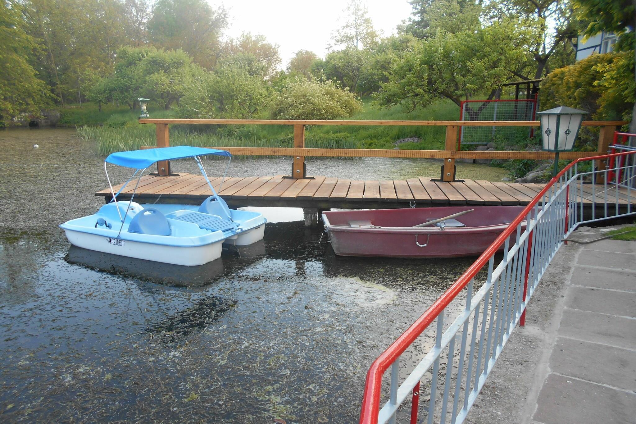Parterre: (Wohnzimmer(Schlafcouch 1 Pers.), Küche(Esstisch, Kochplatte, Wasserkocher, Kaffeemaschine, Kombi-Mikrowelle, Kühlschrank), Schlafzimmer(2x Einzelbett, Doppelbett, TV), Badezimmer(Dusche)) Anlegesteg, Reisebett , Innenhof, Garten, Grill, Parkplatz, Teich, Spielgeräte, Rutsche, Hochstuhl, Schaukel